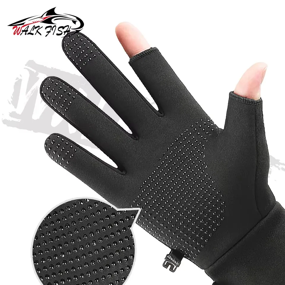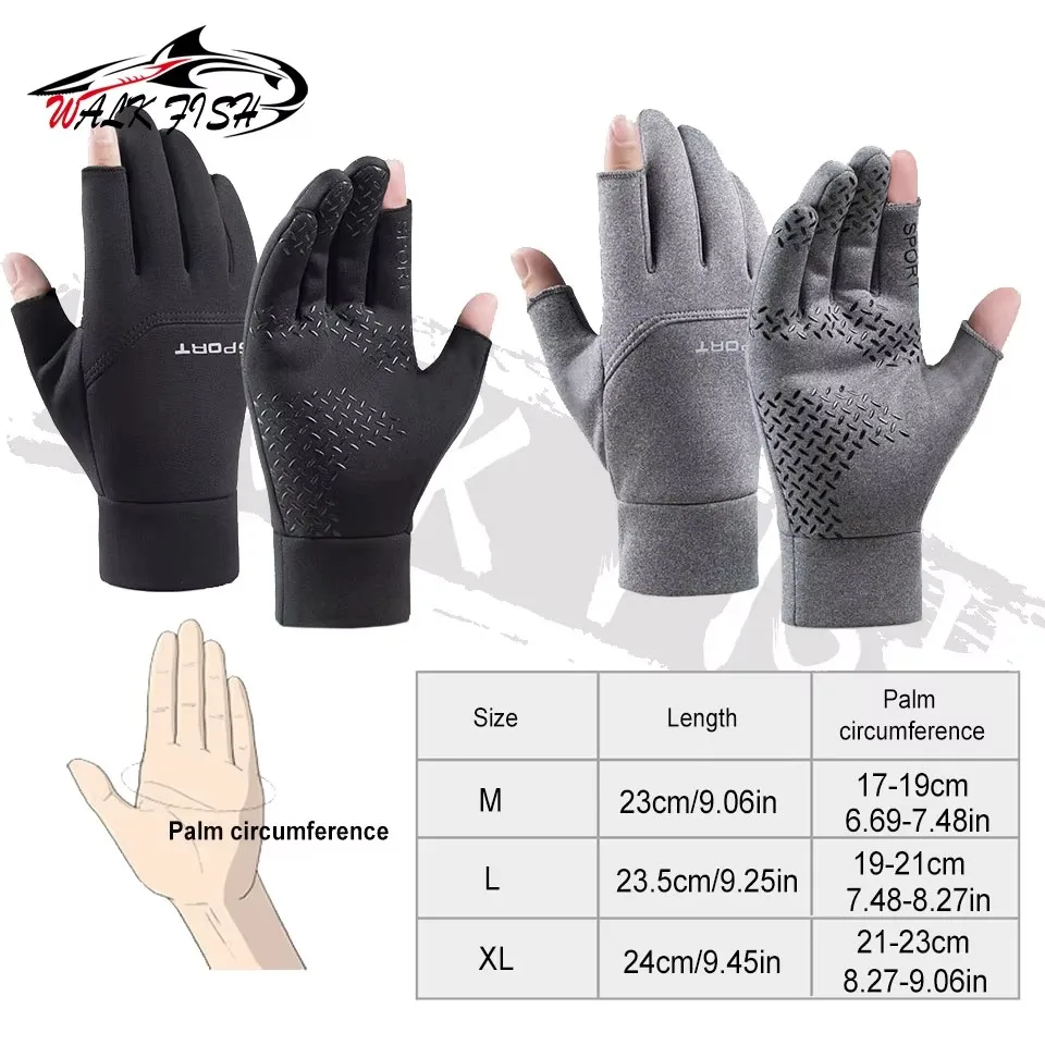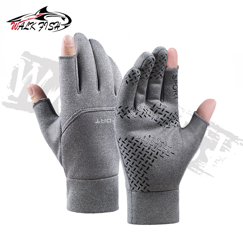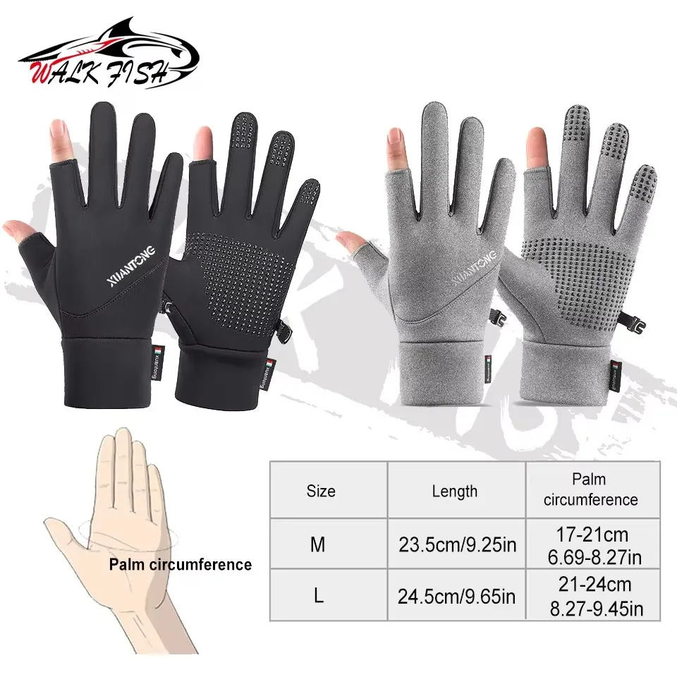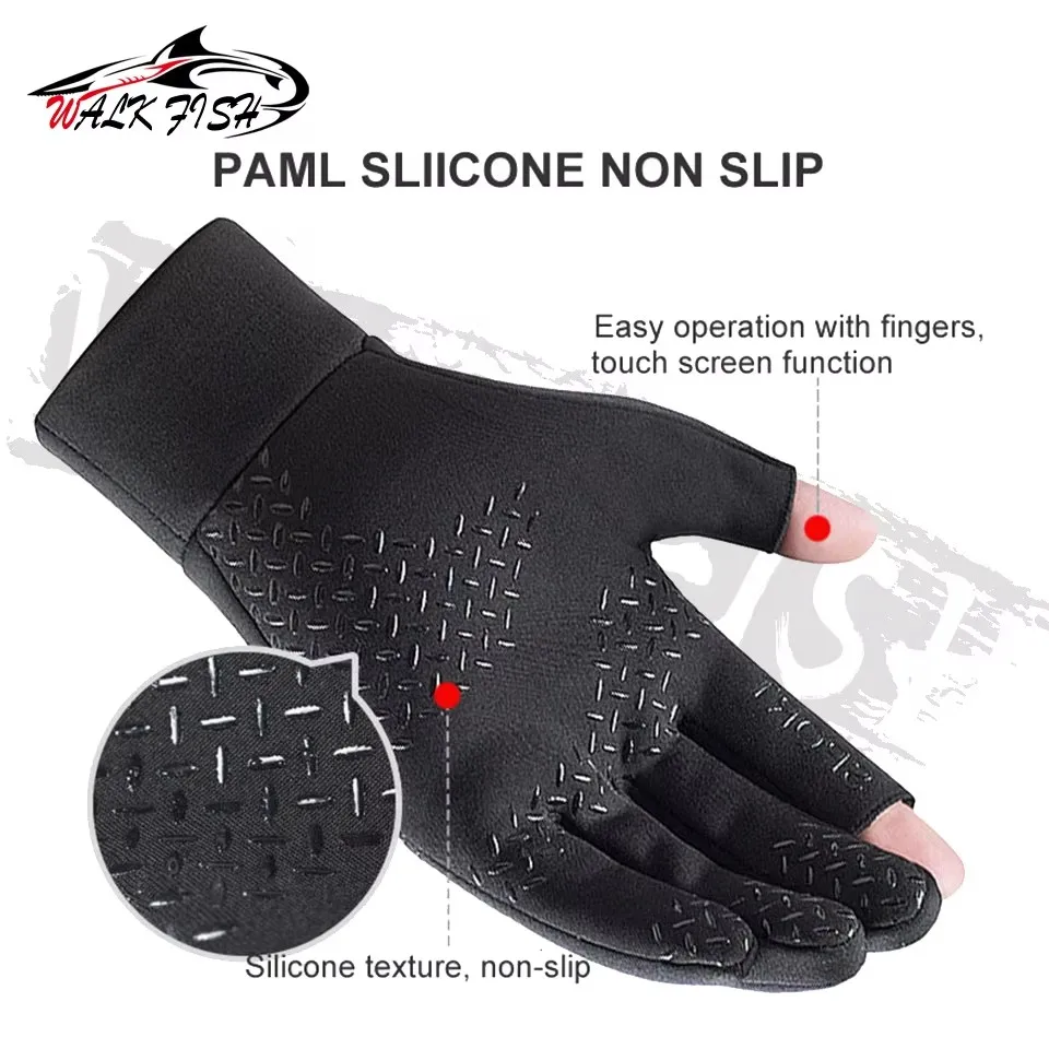 Guantes de pesca WALK FISH, forro polar expuesto con dos dedos para mantener el calor, antideslizantes, entrega urgente, protección contra el viento para pantalla de ciclismo