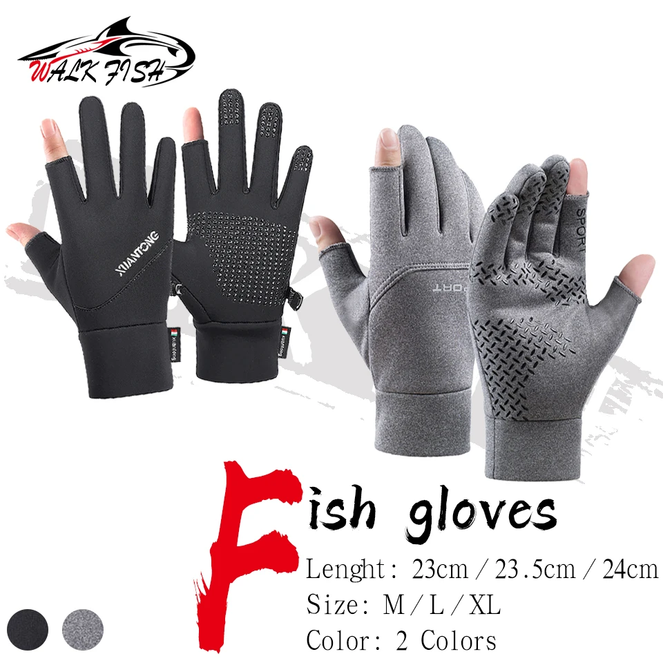 Guantes de pesca WALK FISH, forro polar expuesto con dos dedos para mantener el calor, antideslizantes, entrega urgente, protección contra el viento para pantalla de ciclismo