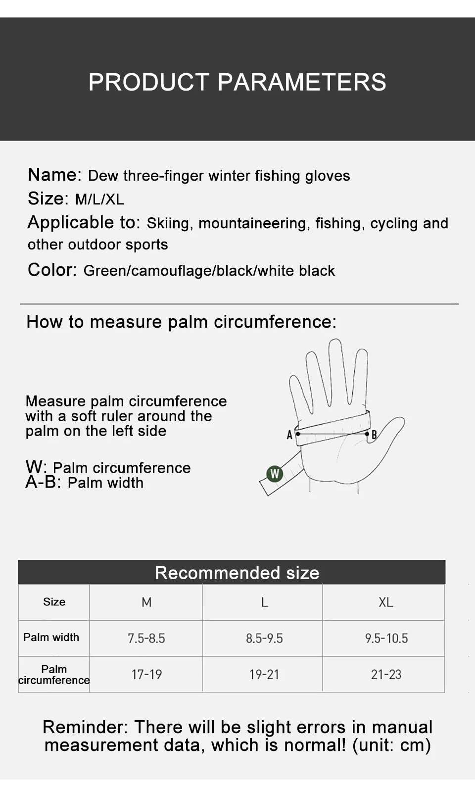 XL:Adecuado para circunferencia de la palma 21-23cm