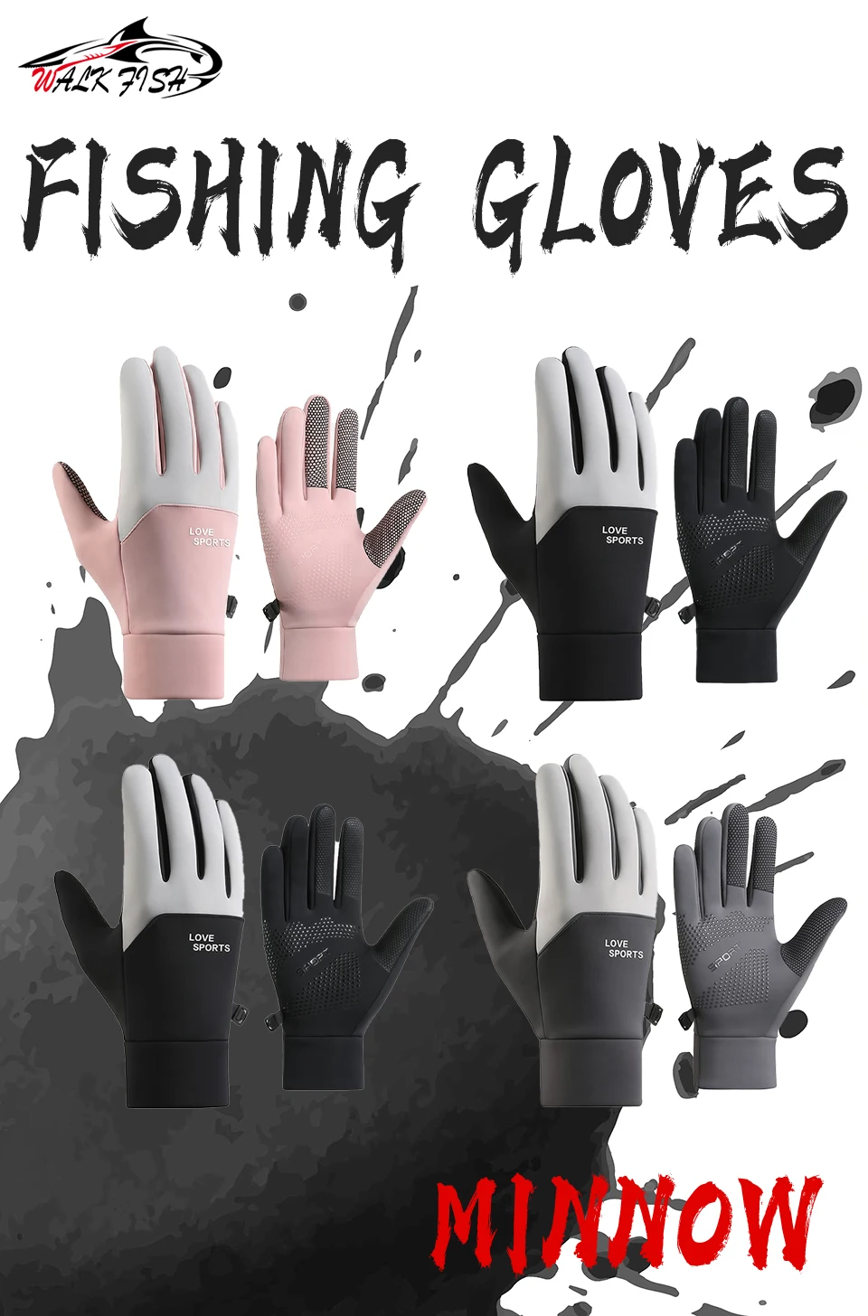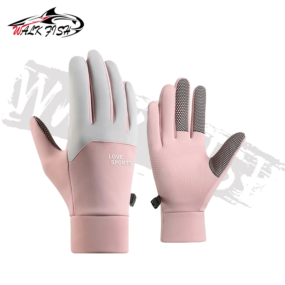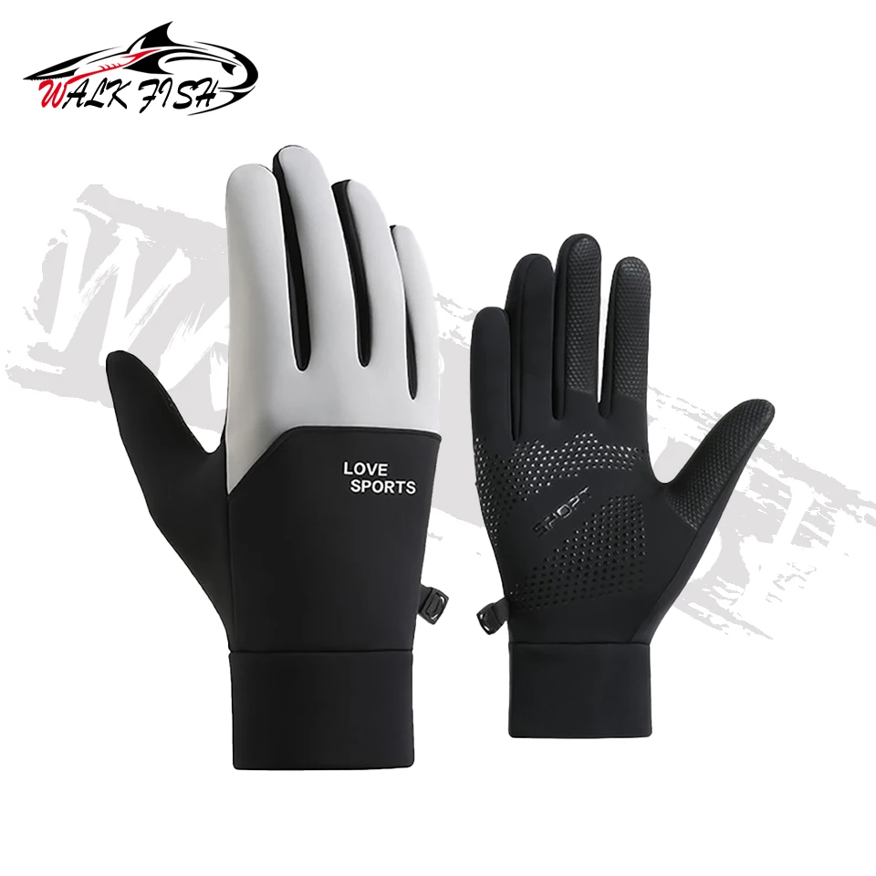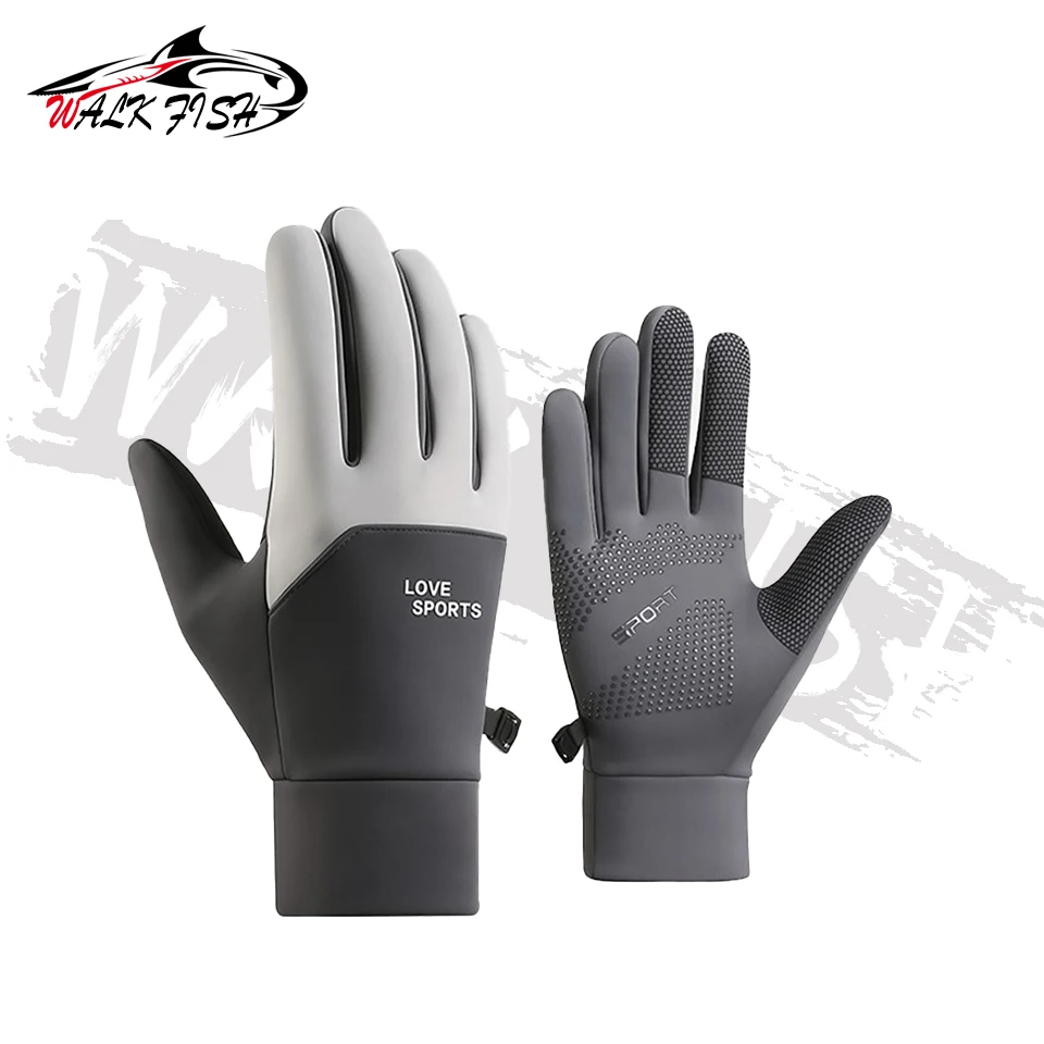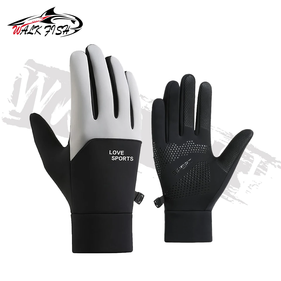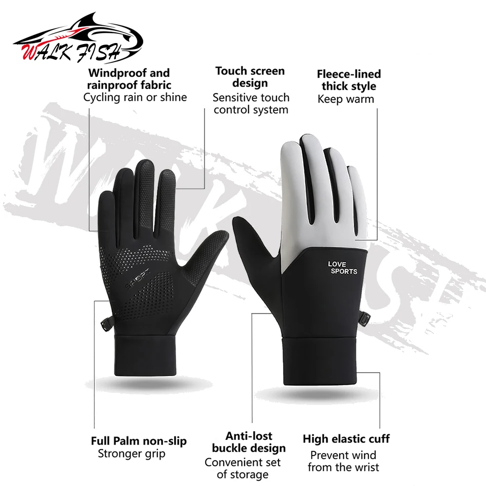 Guantes de pesca WALK FISH para hombre, guantes de invierno con forro polar grueso, a prueba de viento, anticongelante, pantalla táctil, deportes al aire libre, correr, ciclismo