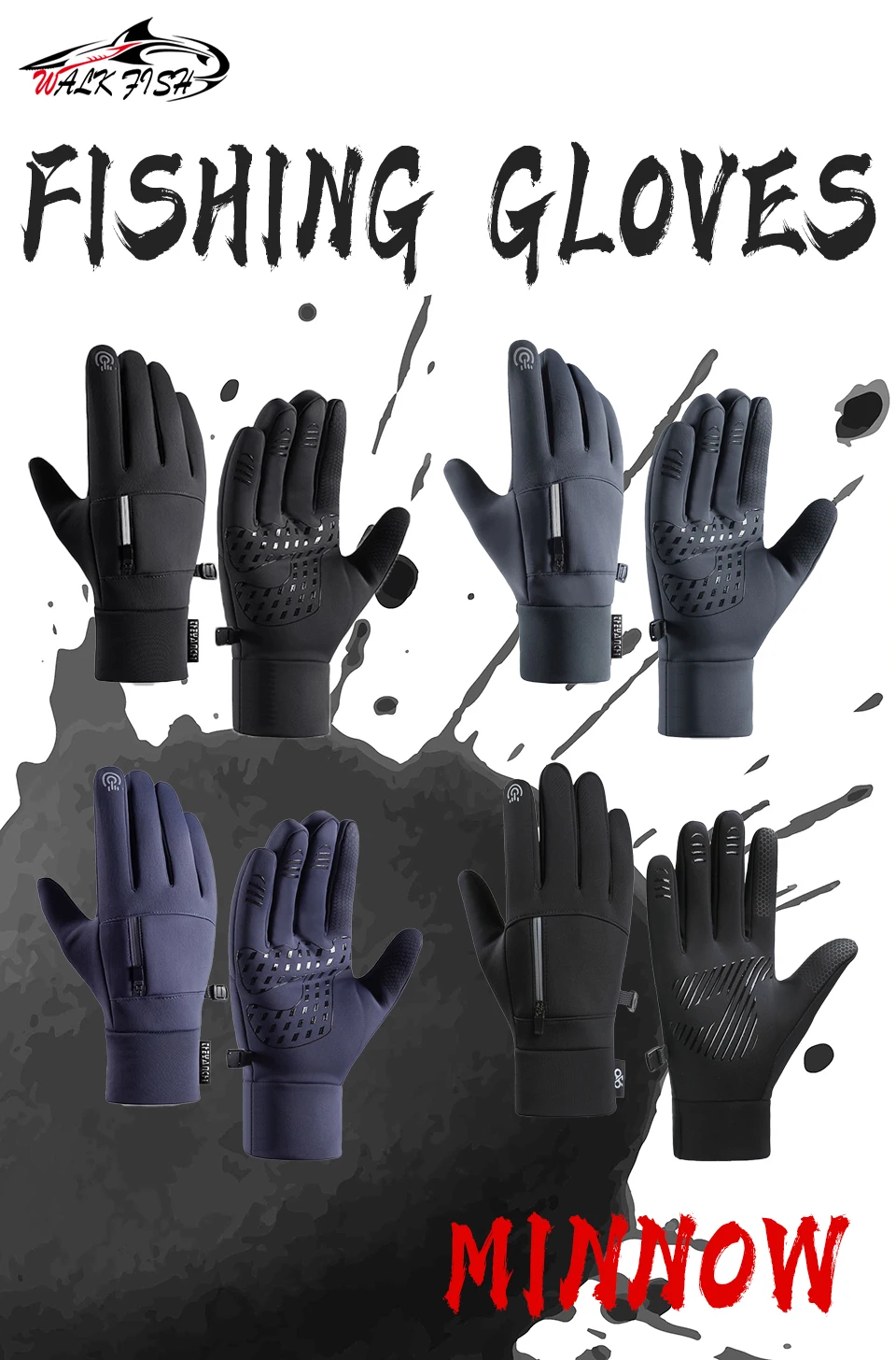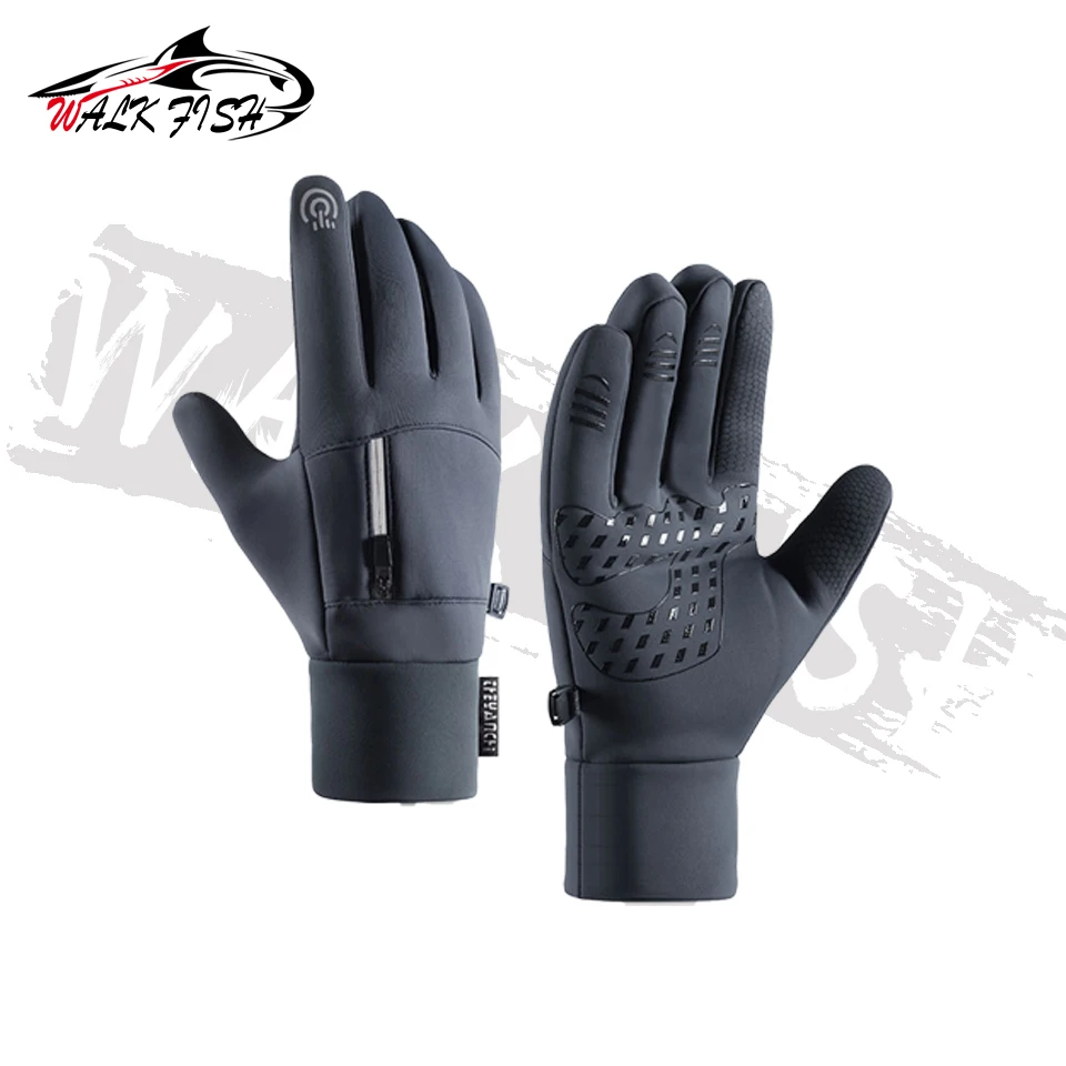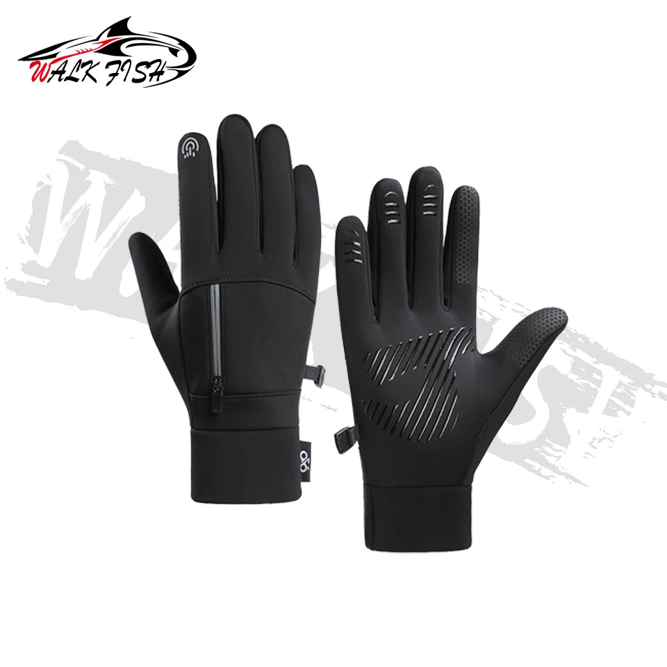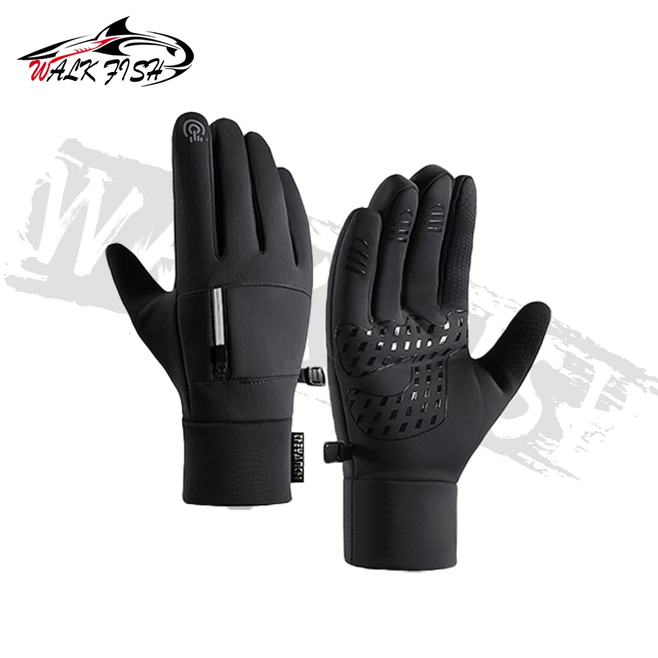Guantes de pesca WALK FISH para hombre y mujer, deportes al aire libre, pantalla táctil impermeable, mantiene el calor, agrega lana gruesa para montar en bicicleta y esquiar