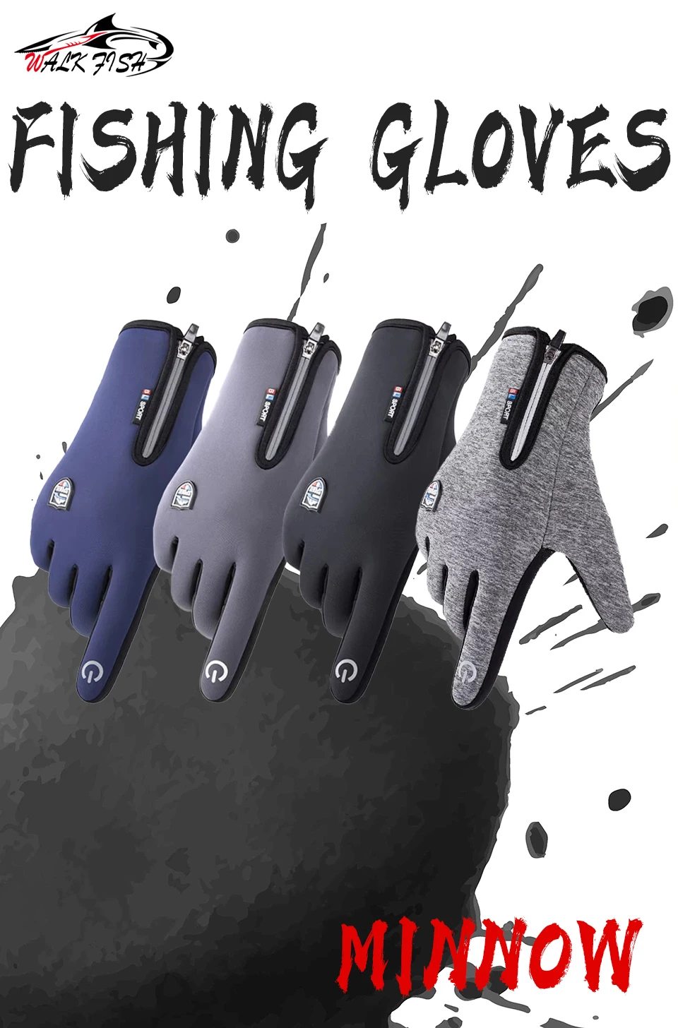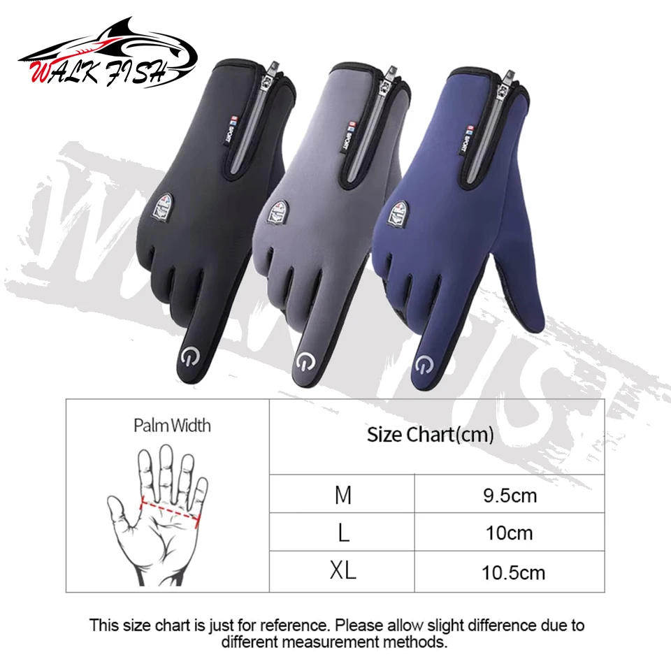 Guantes de pesca WALK FISH mantienen el calor pantalla táctil ciclismo masculino impermeable agregar forro polar al aire libre a prueba de viento desgaste esquí senderismo
