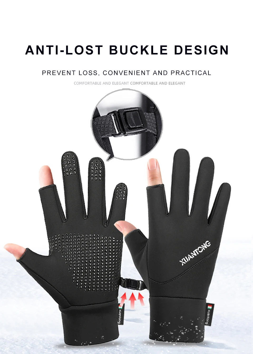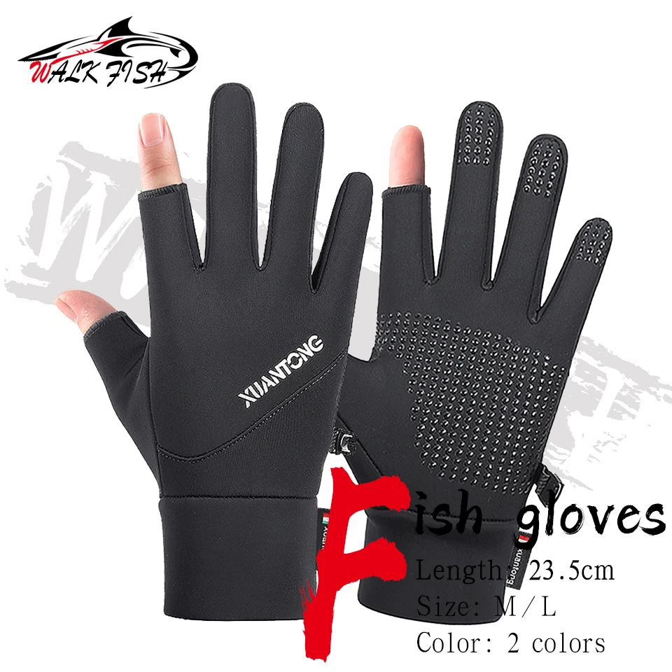 WALK FISH-guantes de pesca de invierno para deportes al aire libre, 2 dedos, cálidos, antideslizantes, resistentes al agua, para ciclismo y pesca, 1 par