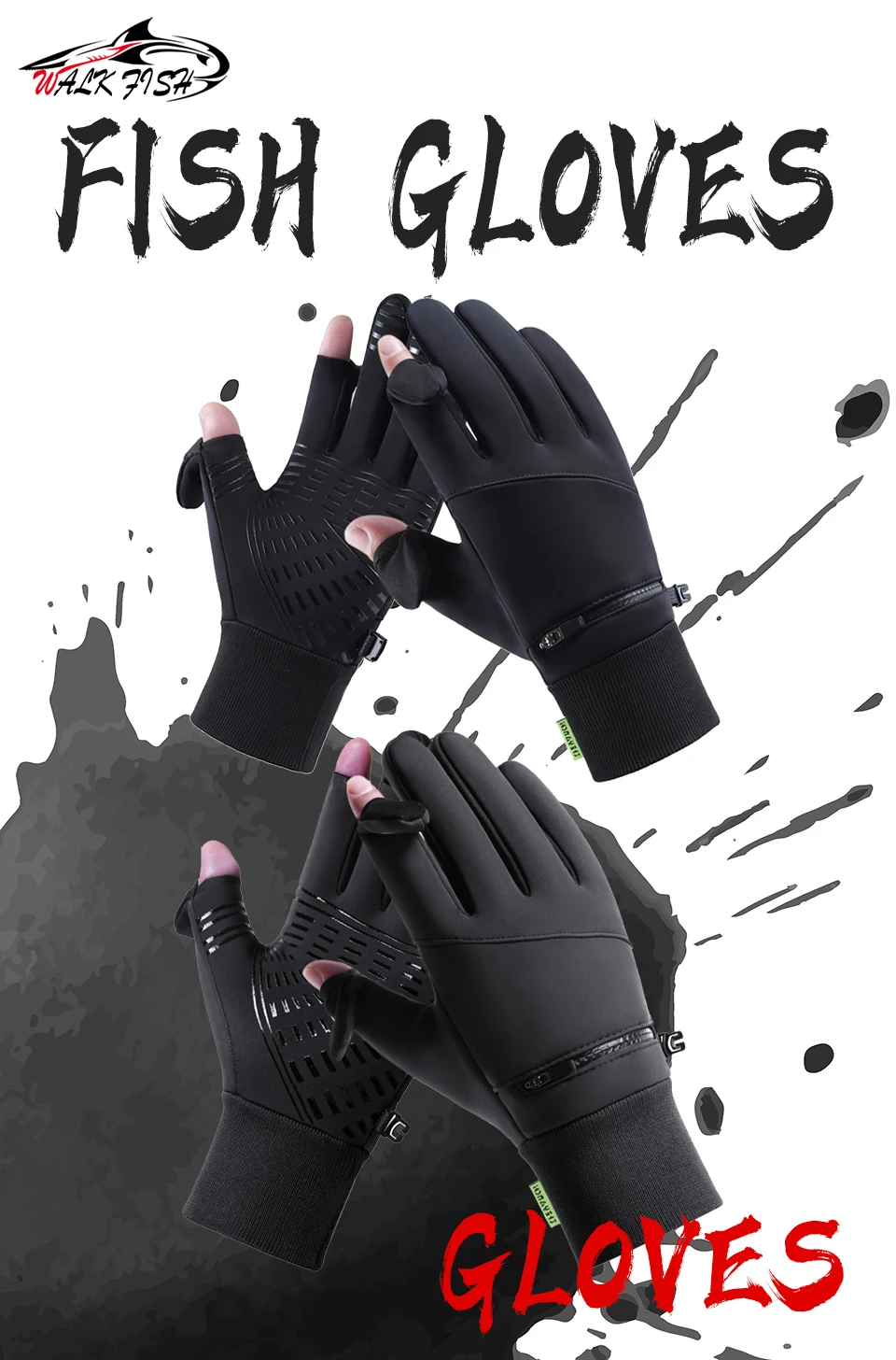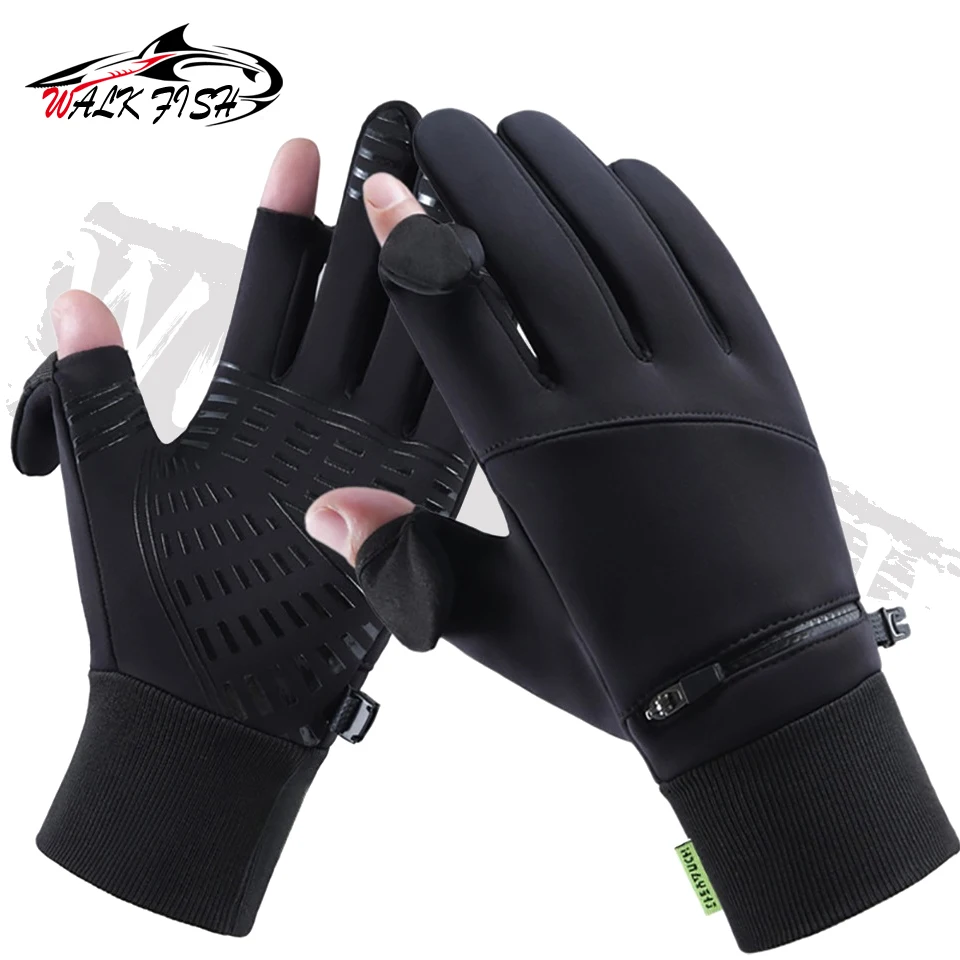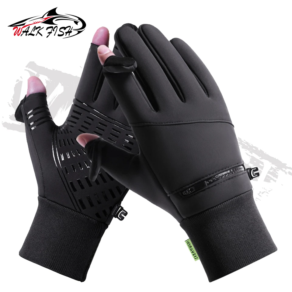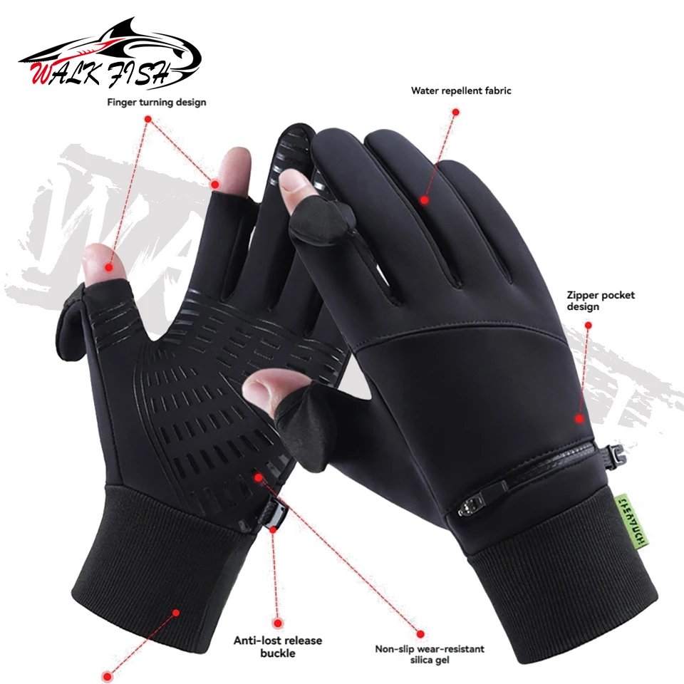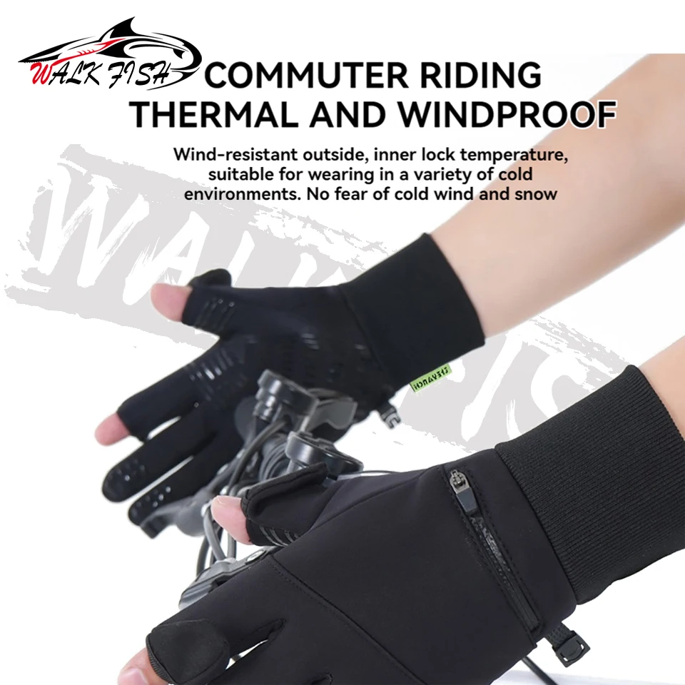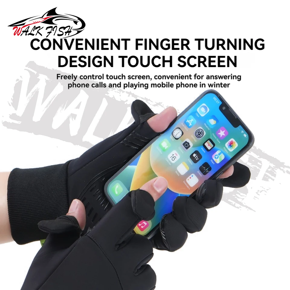 WALK FISH invierno al aire libre pantalla táctil guantes de pesca antideslizante a prueba de viento acolchado cálido segundo dedo Flip dedo guante Atlético