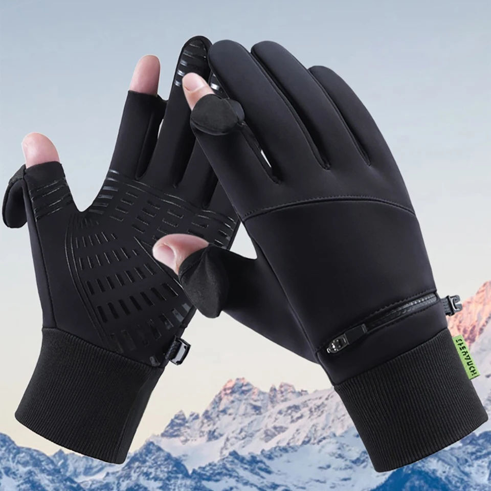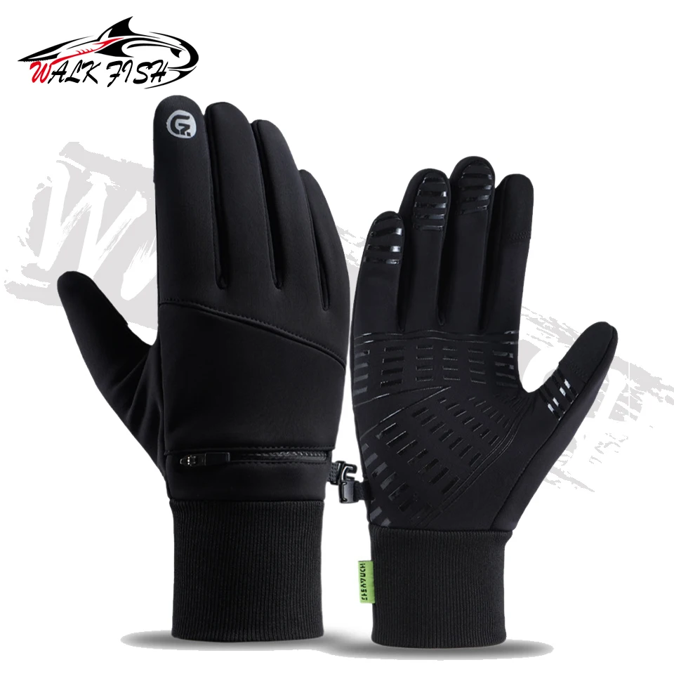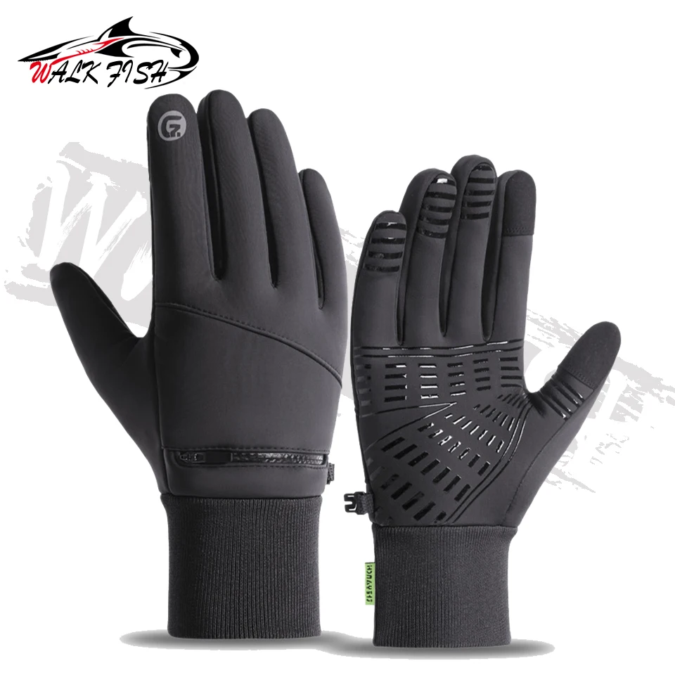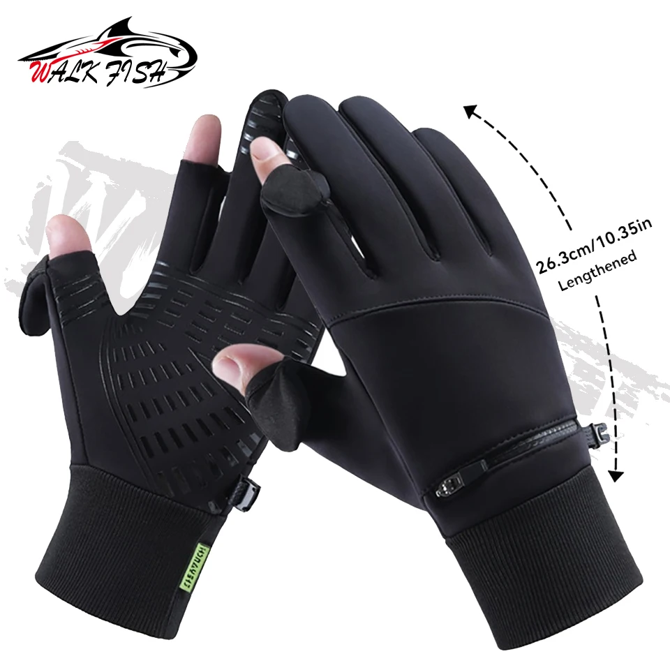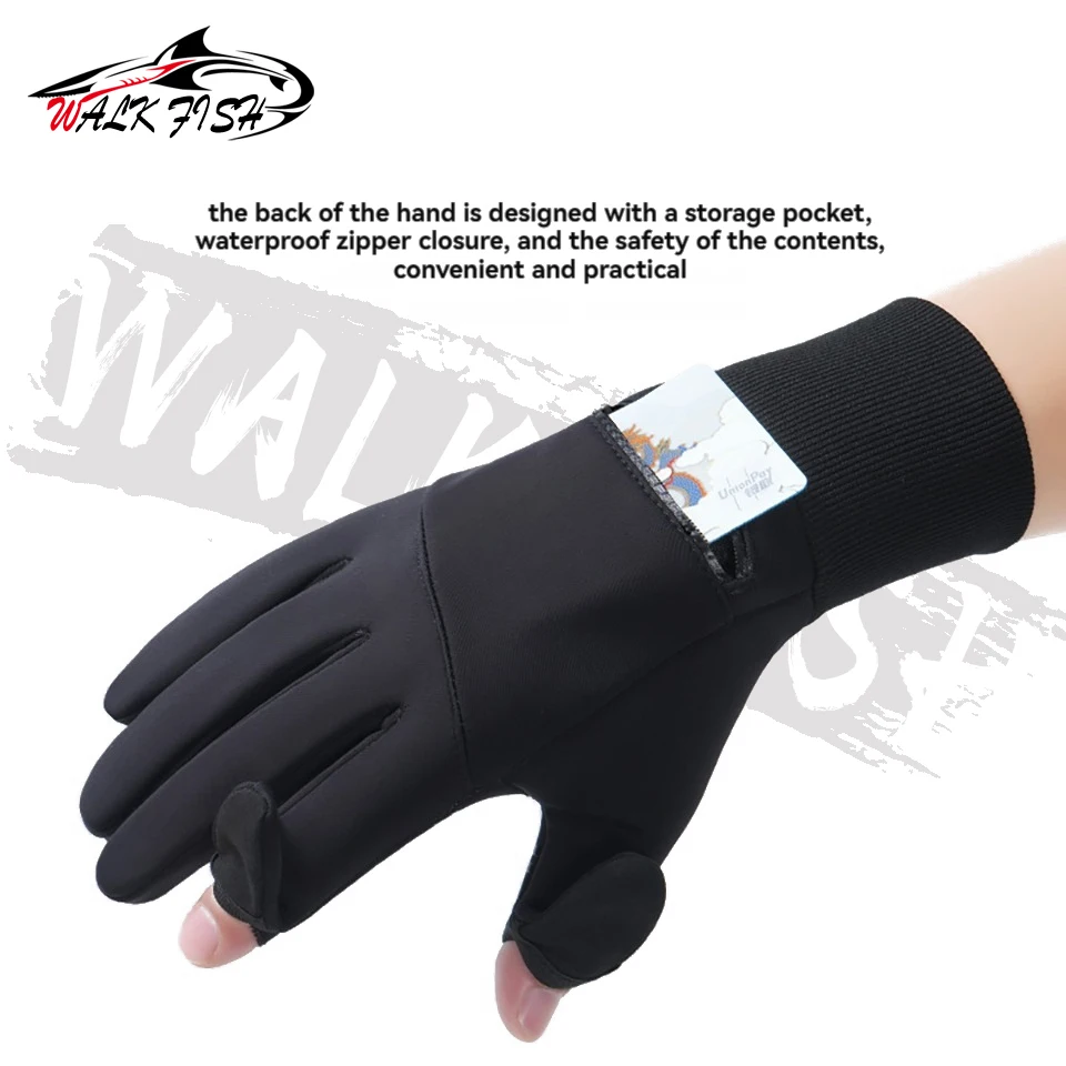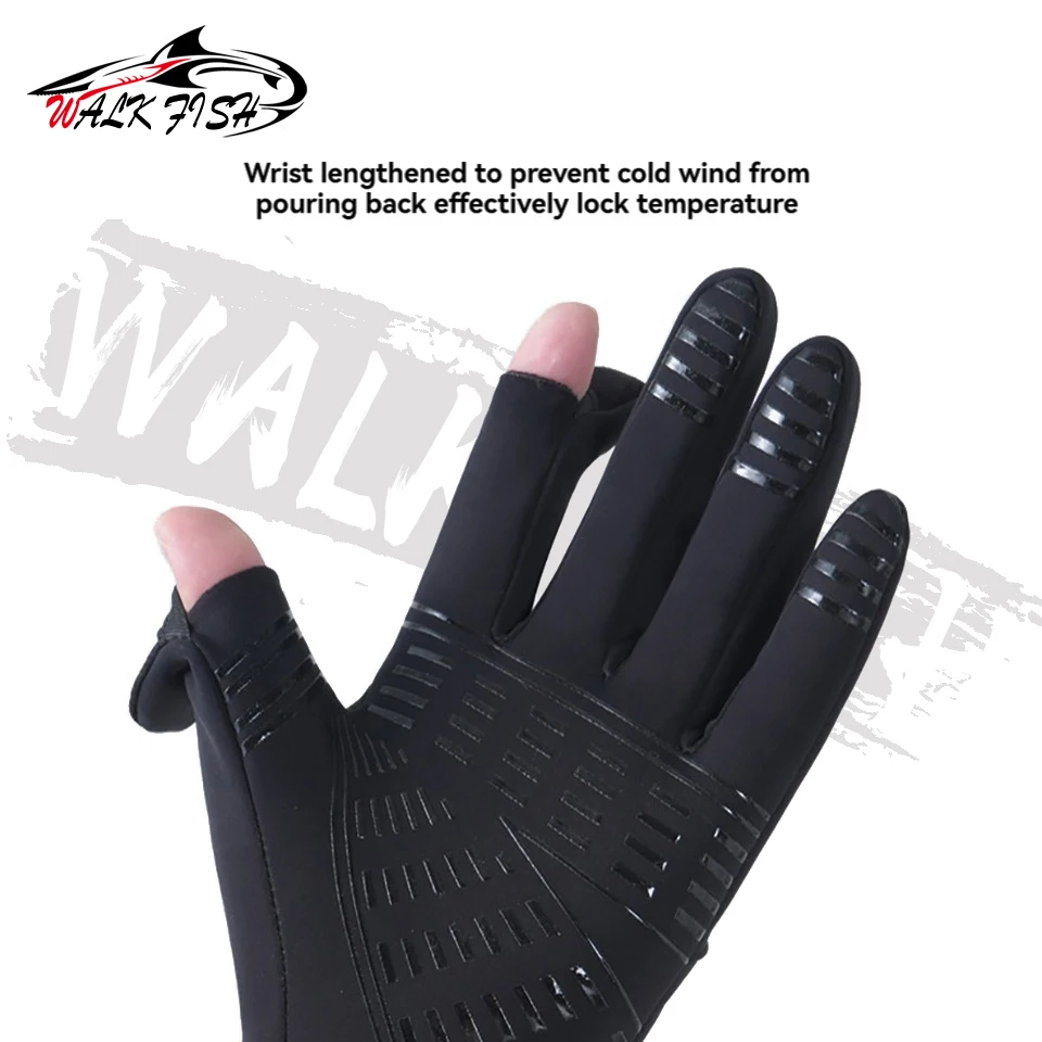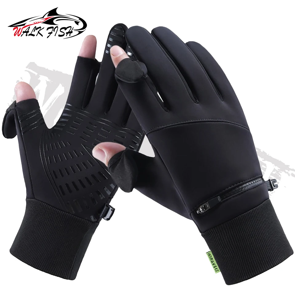 WALK FISH invierno al aire libre pantalla táctil guantes de pesca antideslizante a prueba de viento acolchado cálido segundo dedo Flip dedo guante Atlético