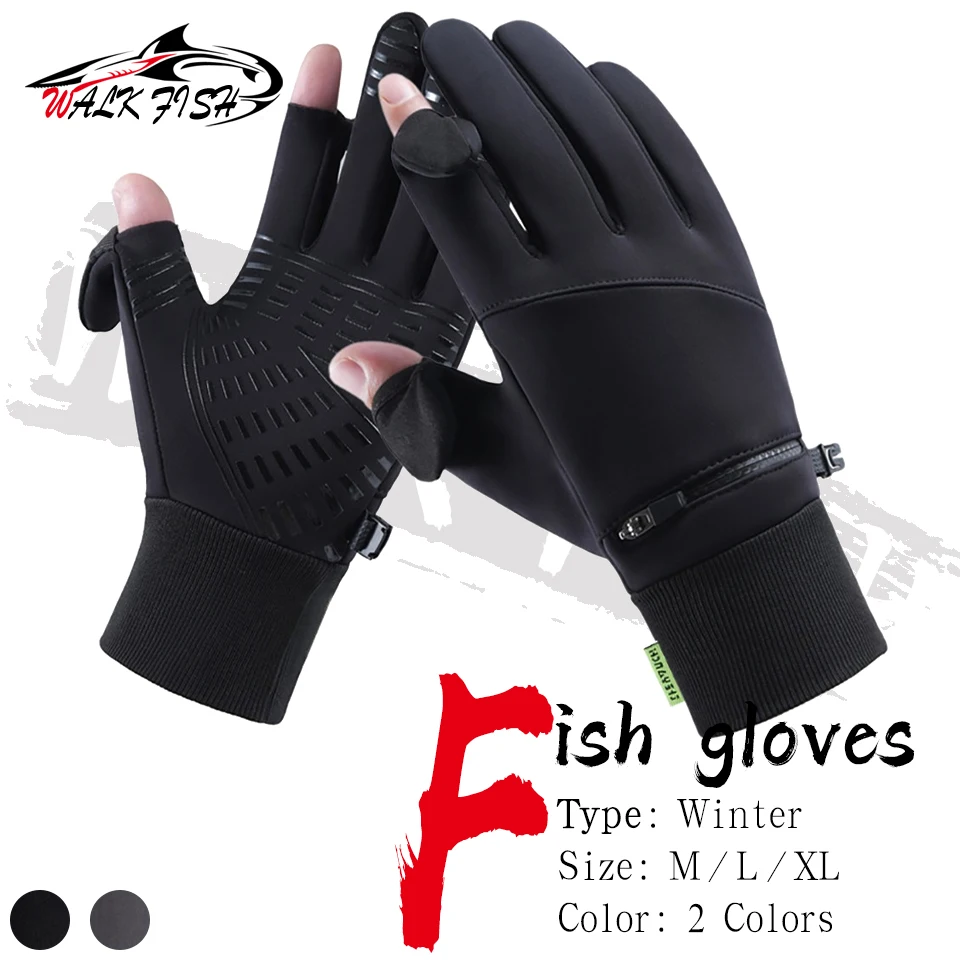 WALK FISH invierno al aire libre pantalla táctil guantes de pesca antideslizante a prueba de viento acolchado cálido segundo dedo Flip dedo guante Atlético