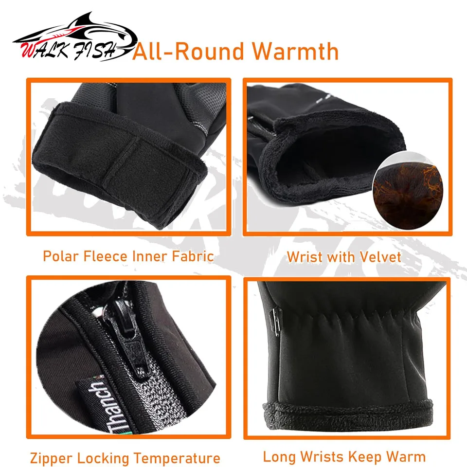 WALK FISH-guantes de pesca sin dedos para hombre y mujer, a prueba de viento, pantalla táctil de clima frío, guantes de Ciclismo de motocicleta cálidos, Invierno