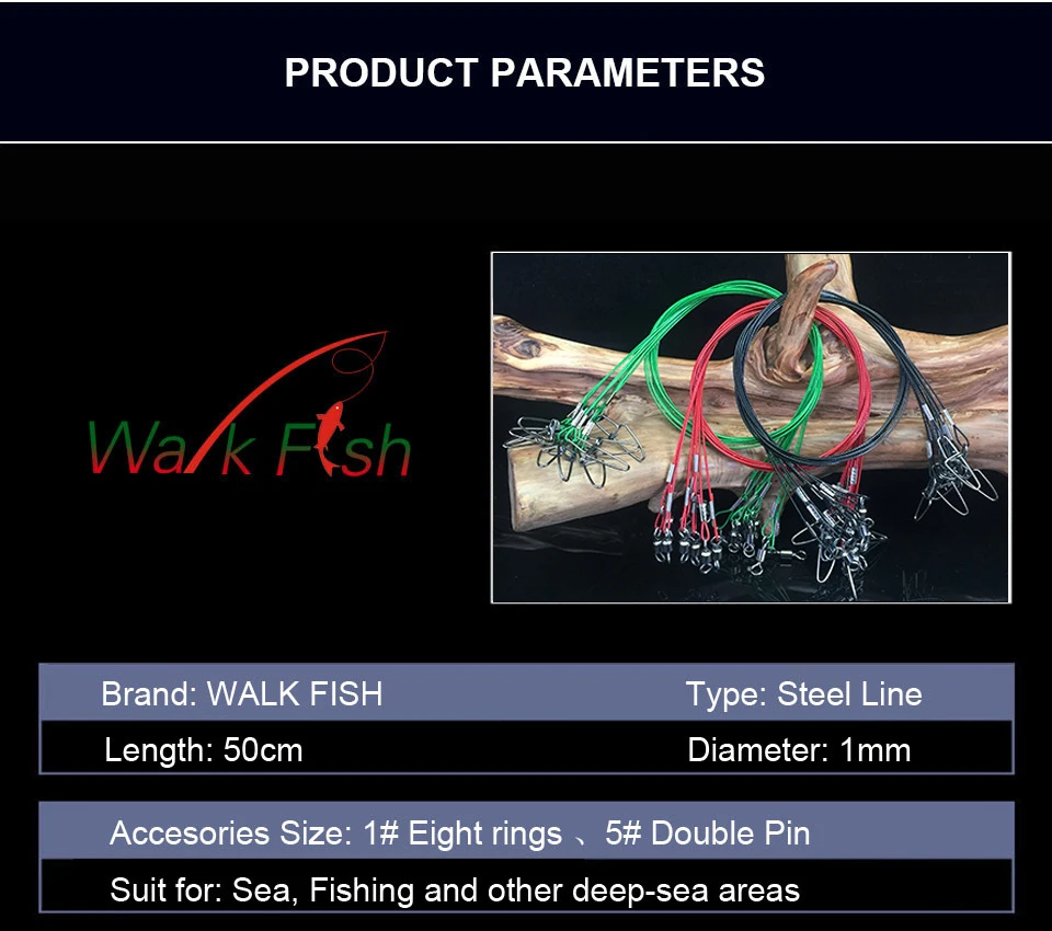 WALK FISH-hilo de pescar de 50CM, líder de alambre de acero con accesorio giratorio, 3 colores, Correa Olta Leadcore, 10 unids/lote