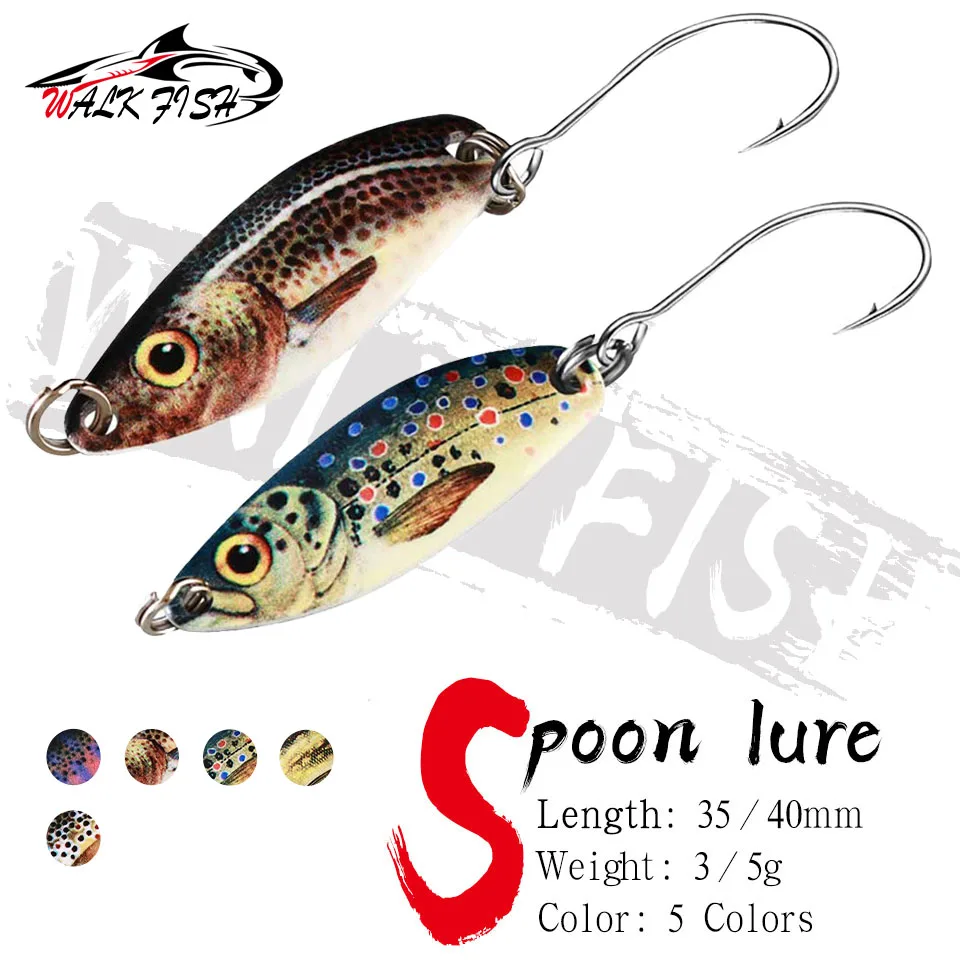 Walk Fish 3G 5g Casting Spoon Set Ultraligero Metal Spinner Señuelo Agua dulce Latón Metal Cebo Trucha Pike Bass Lake Spinning Pesca
