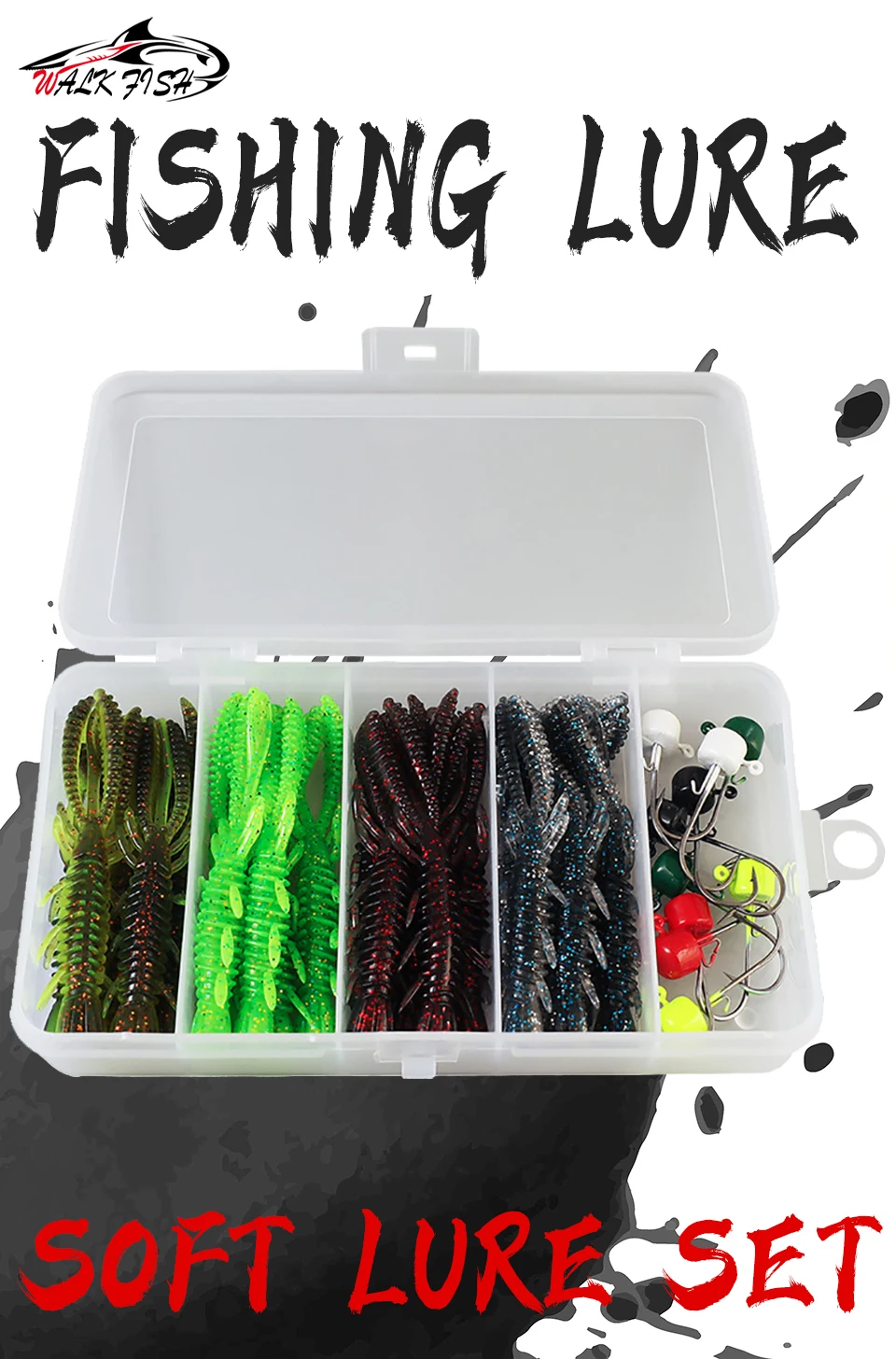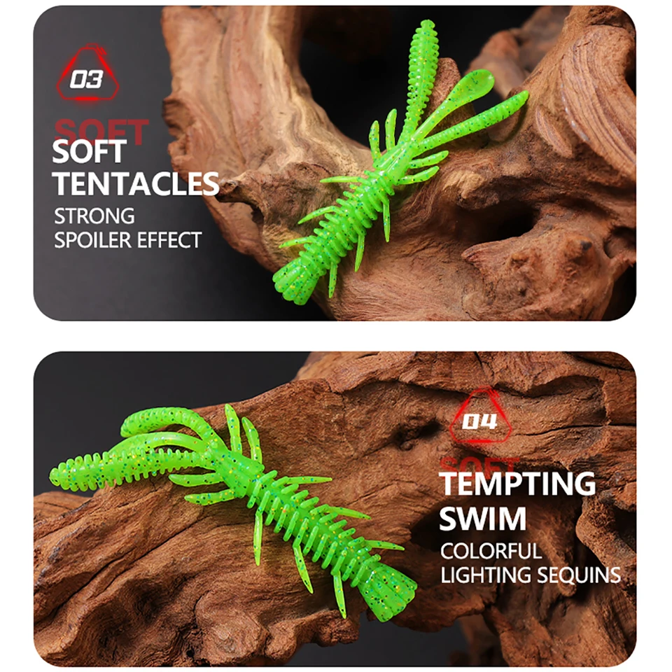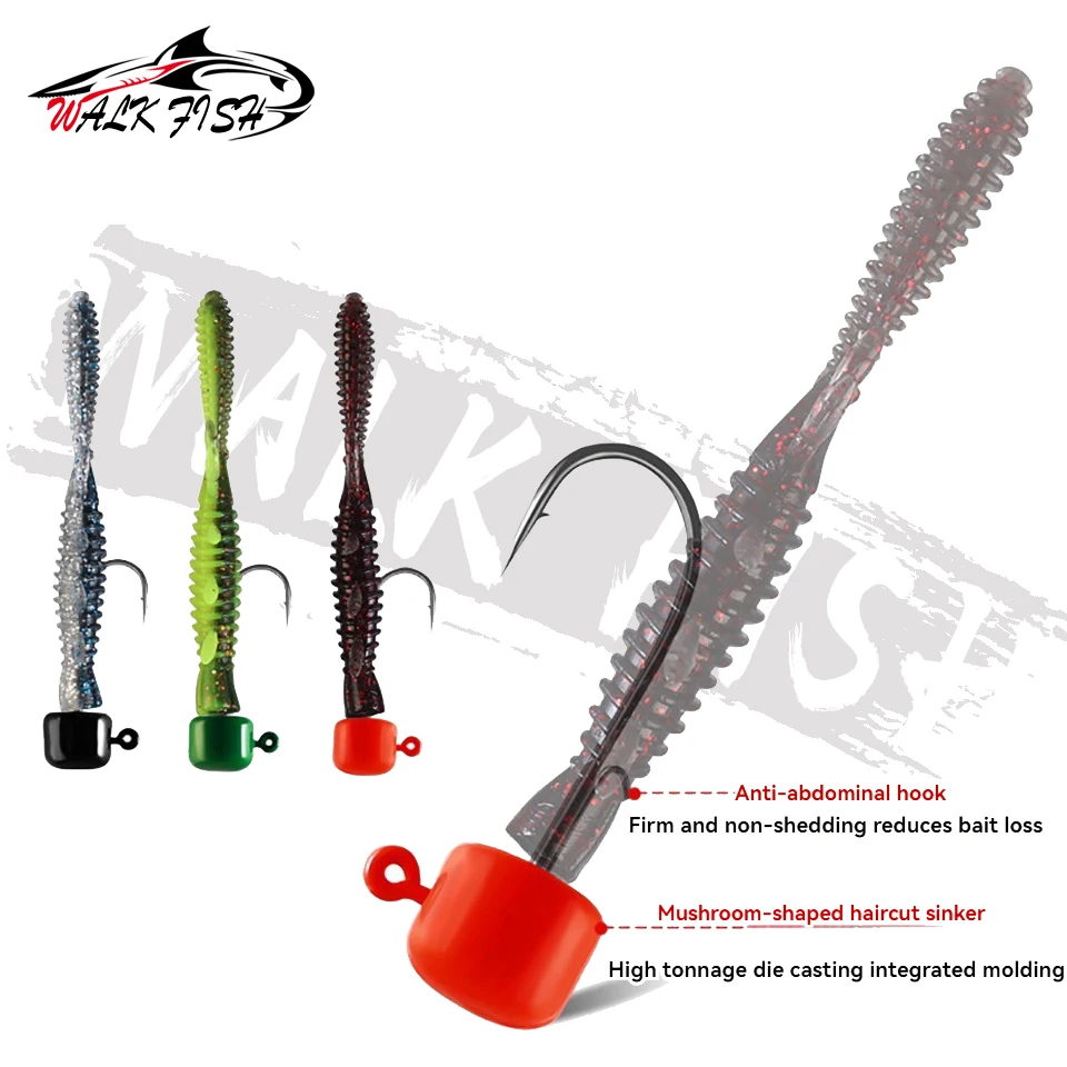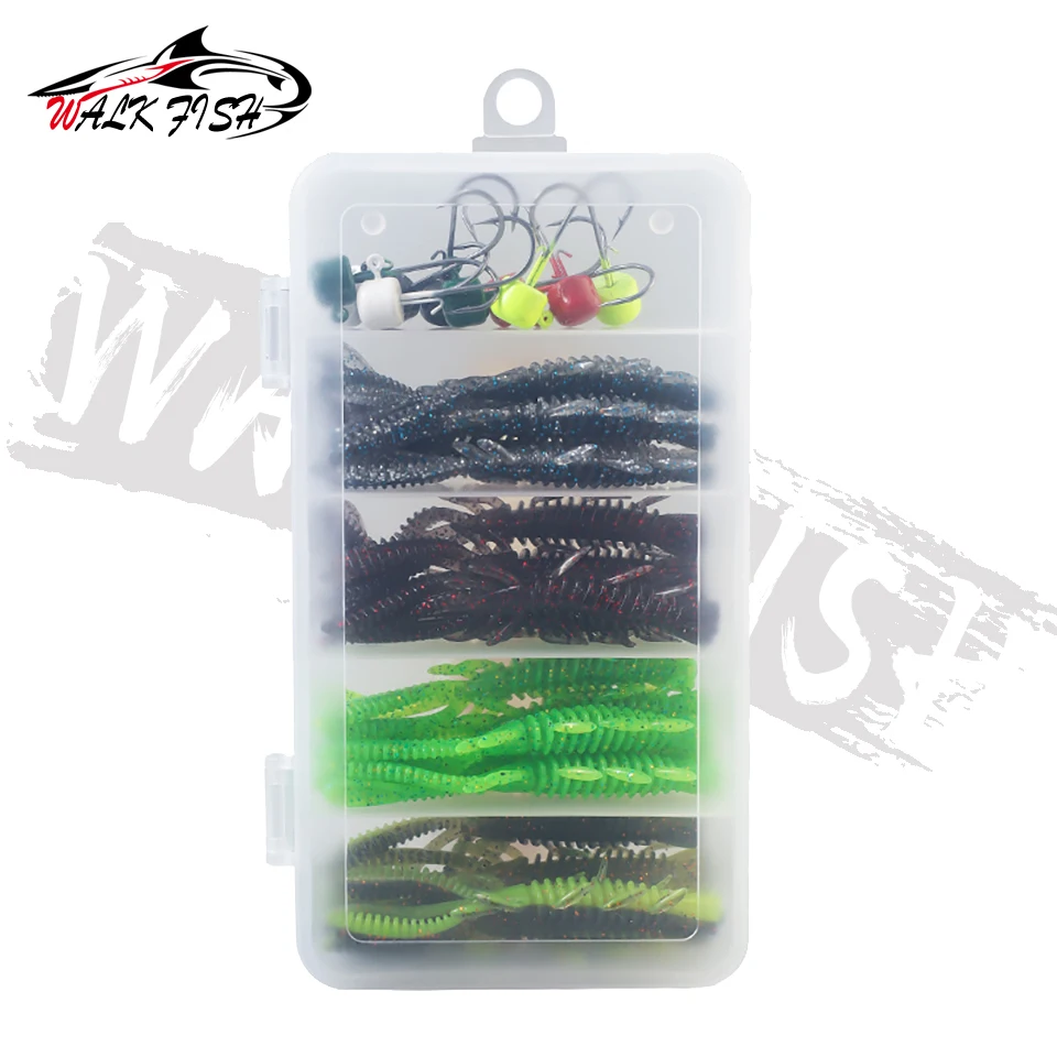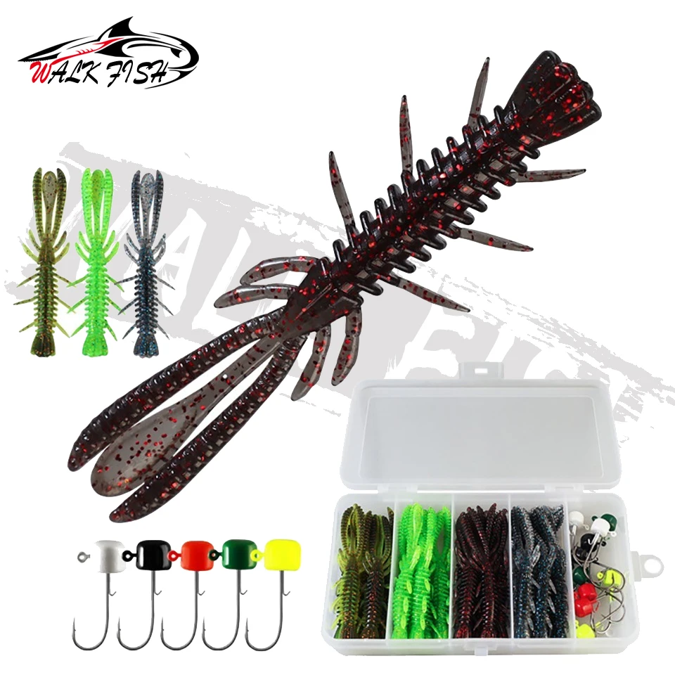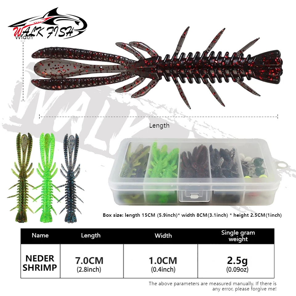 WALK FISH 31 piezas 7cm juego de señuelos de camarón flotante con anzuelo de cabeza de plomo cebo de pescado insecto suave anzuelo de camarón falso aparejos de pesca