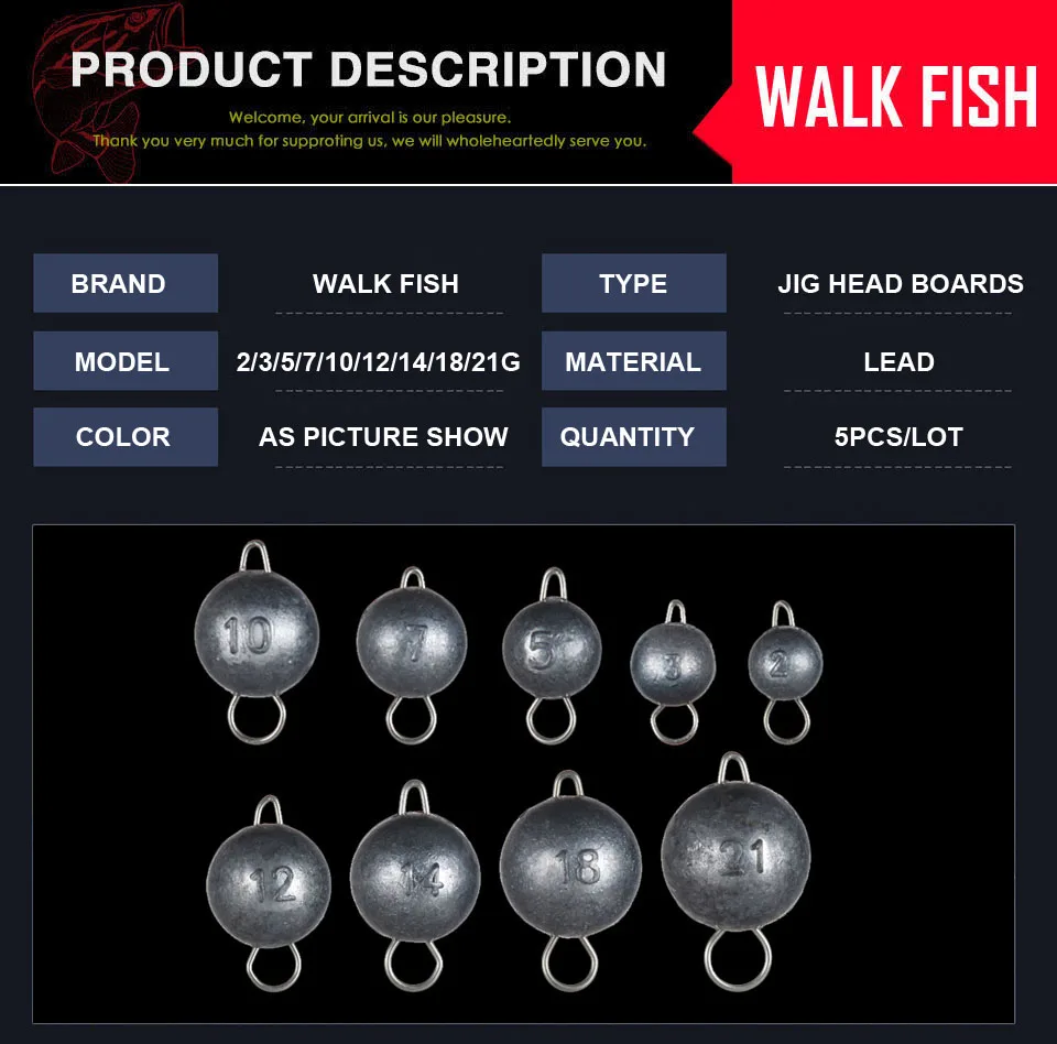 WALK FISH-Lote de 5 unidades de peso de plomo con plantilla de plomo, Cheburashka, 2g/3g/5g/7g/10g/12g/14g/18g/21g señuelo de pesca