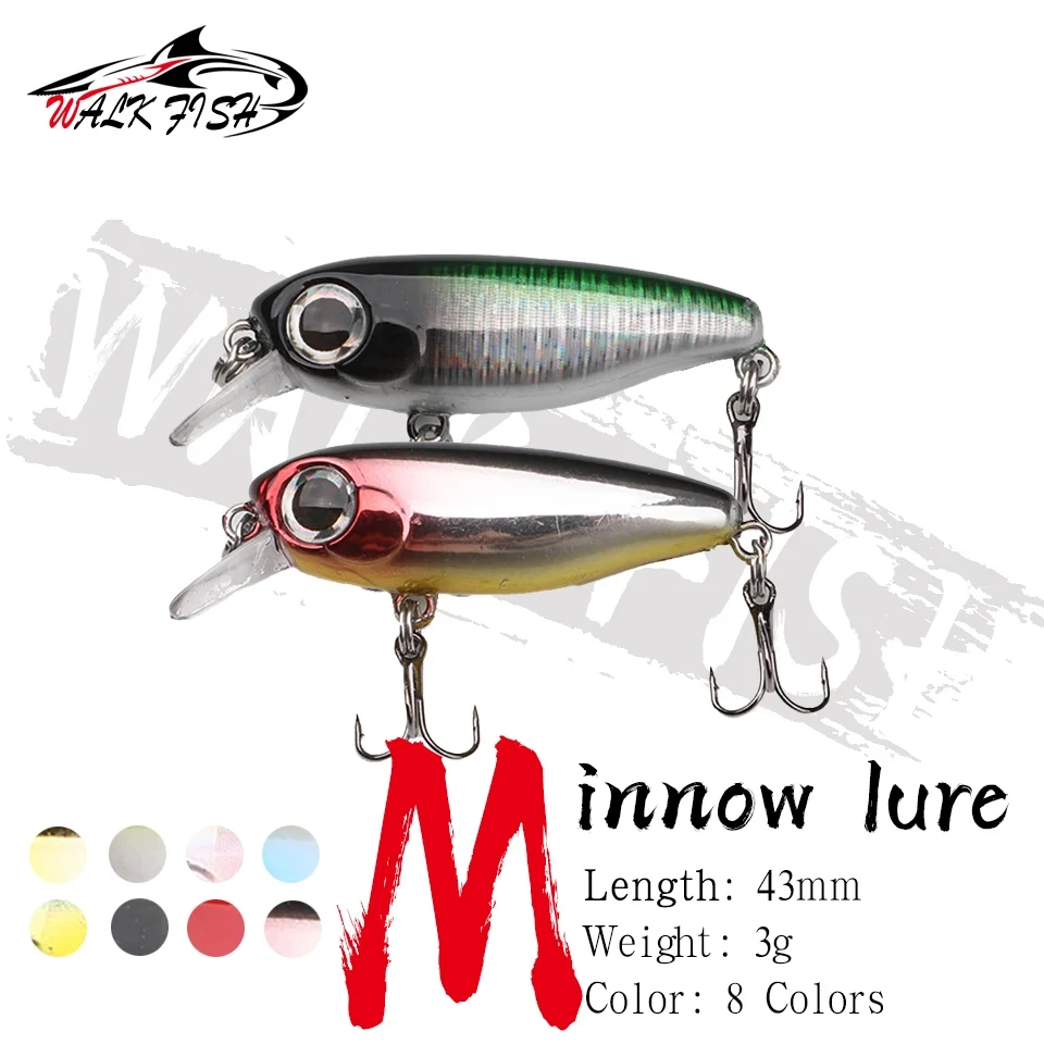 WALK FISH Señuelos de Pesca con Manivela, Mini Cebo Duro Pequeño Hundimiento, Lubina, Agua Salada Fresca, Aparejos de Pesca, 1, 43mm, 3G