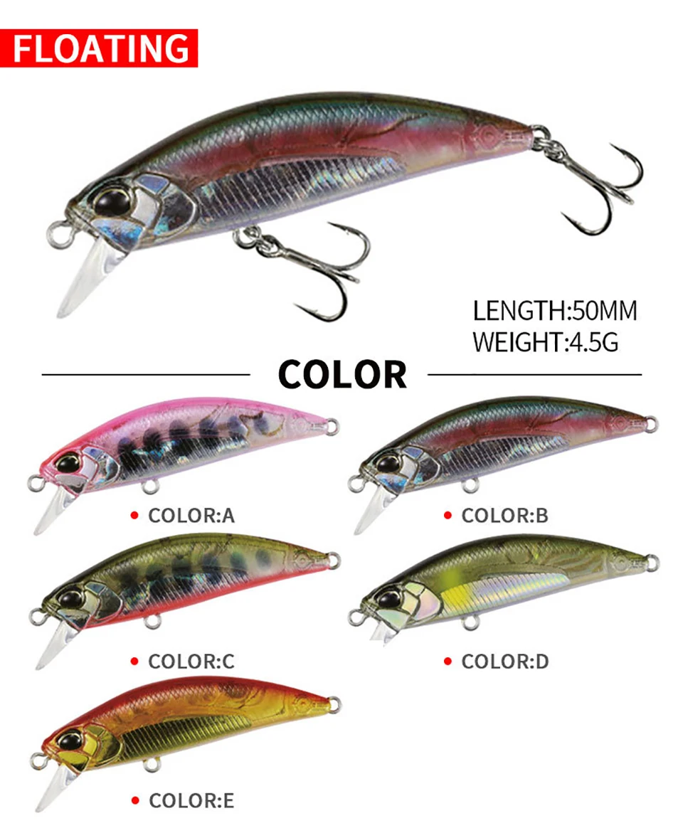 WALK FISH Mini flotante Minnow Wobblers Señuelos de Pesca 5cm 4,5G Trucha Plástico artificial Cebo duro Jerkbait Crankbait Bass Pesca