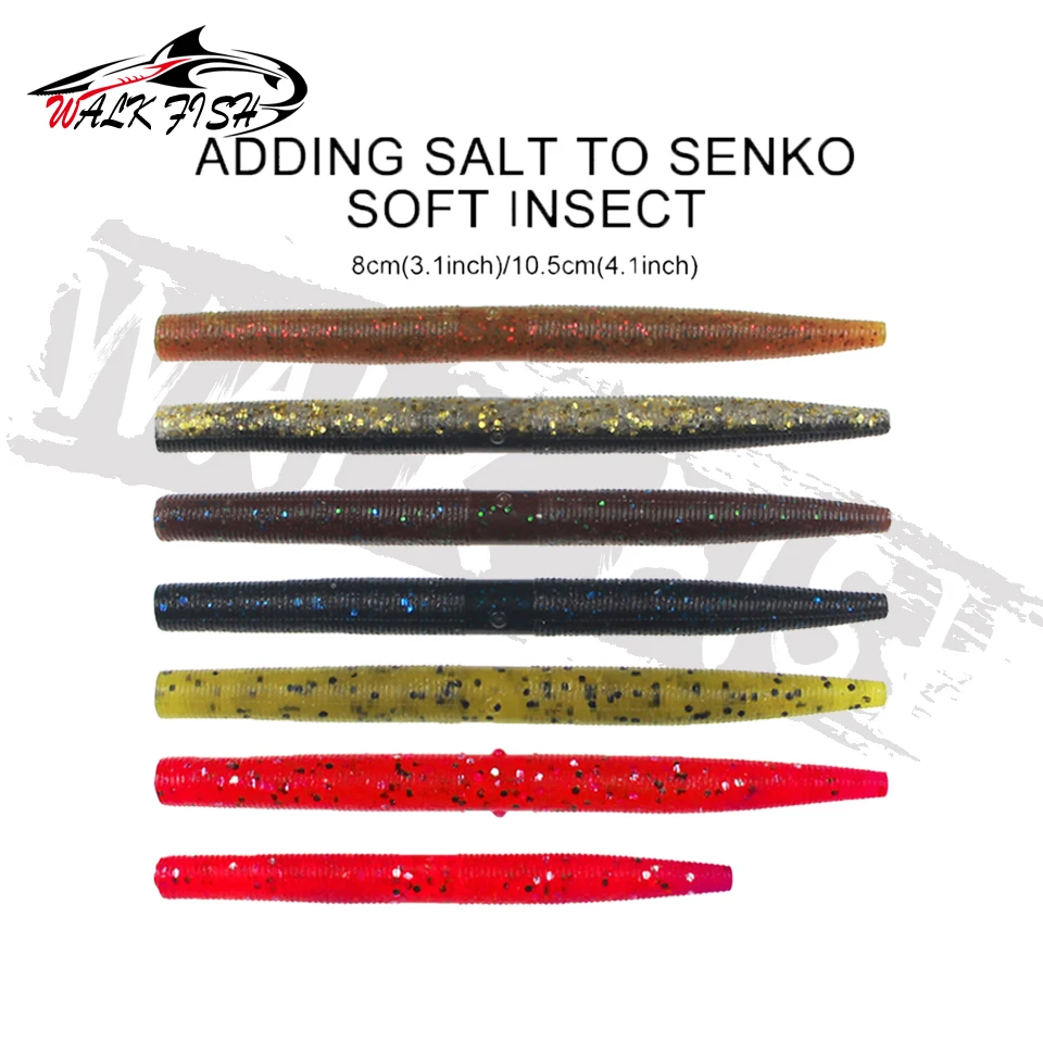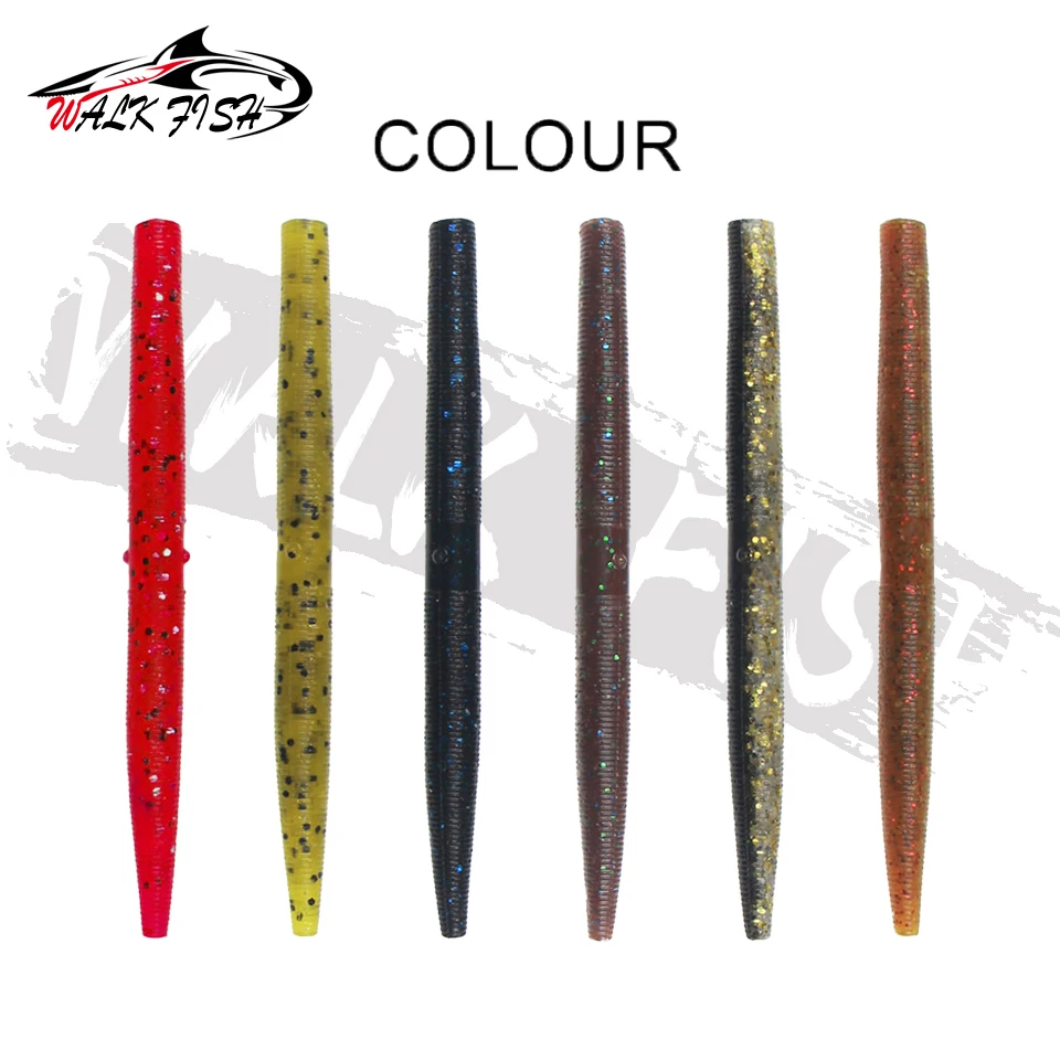 WALK FISH 5 uds 80mm/105mm palo de gusano suave Ned Rig cebo Drop Shot sin peso Wacky Rig lombriz agregar sal cebo Artificial pesca