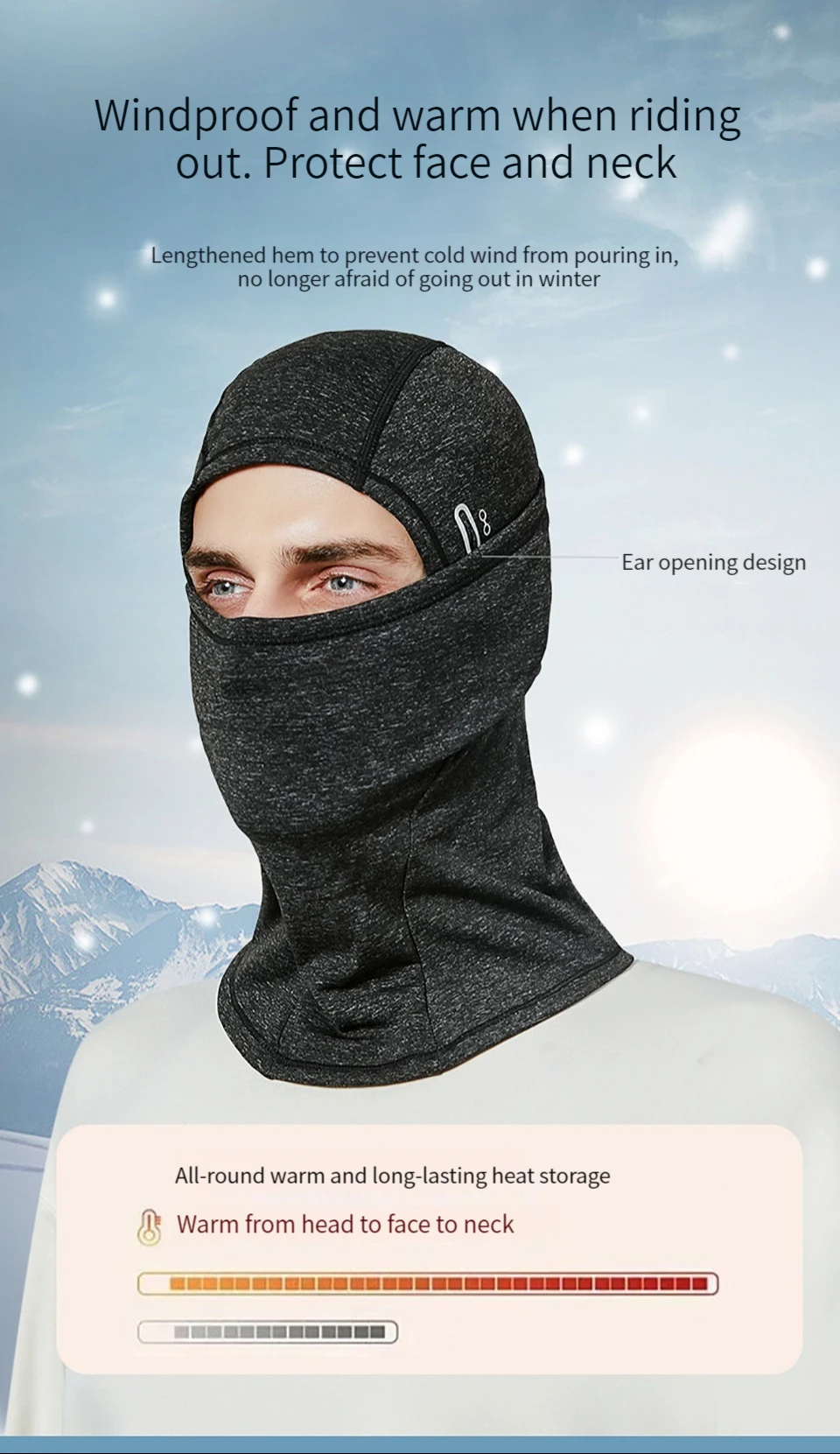 Resistente al viento y cálido al salir. Protege cara y cuello