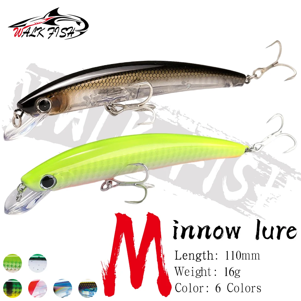 WALK FISH-señuelo Artificial para pesca, pececillo flotante de 110mm, 16g, grande, 3D, Wobbler, curricán, fundición, agua de mar, lubina, trucha, Isca