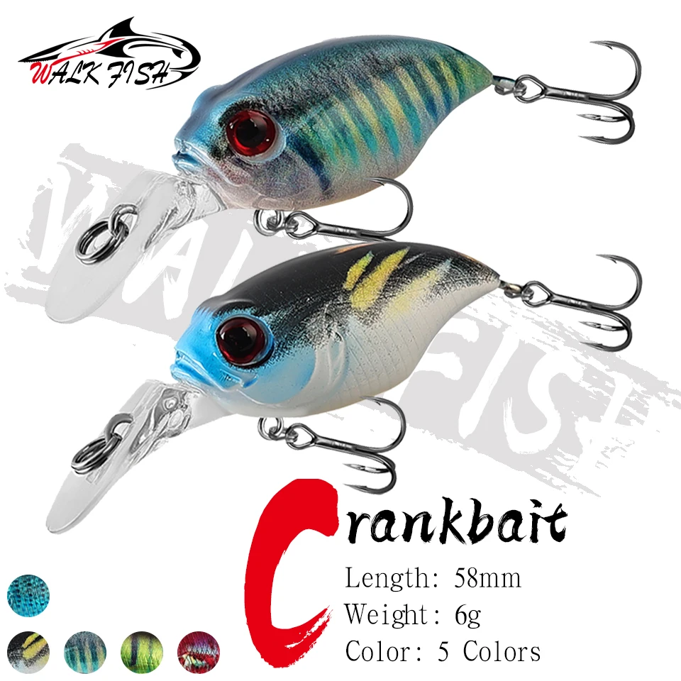 WALK FISH-señuelo de buceo profundo con estampado 3D, 6g, 5,8 cm, Crankbait, labio corto, con bolas sonajero, diseño de fundición ultralargo para Lucio