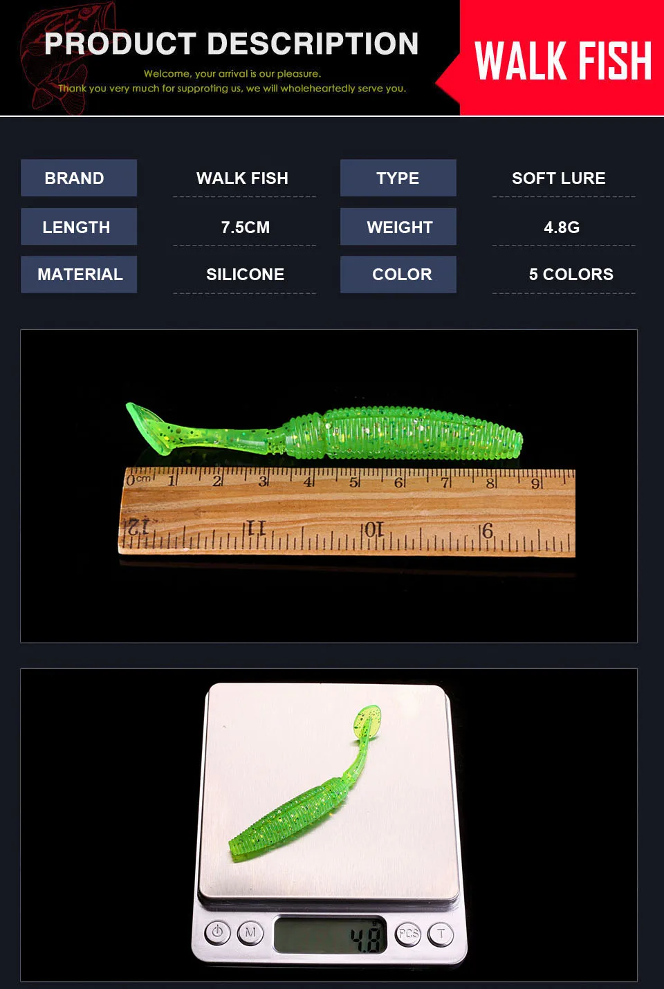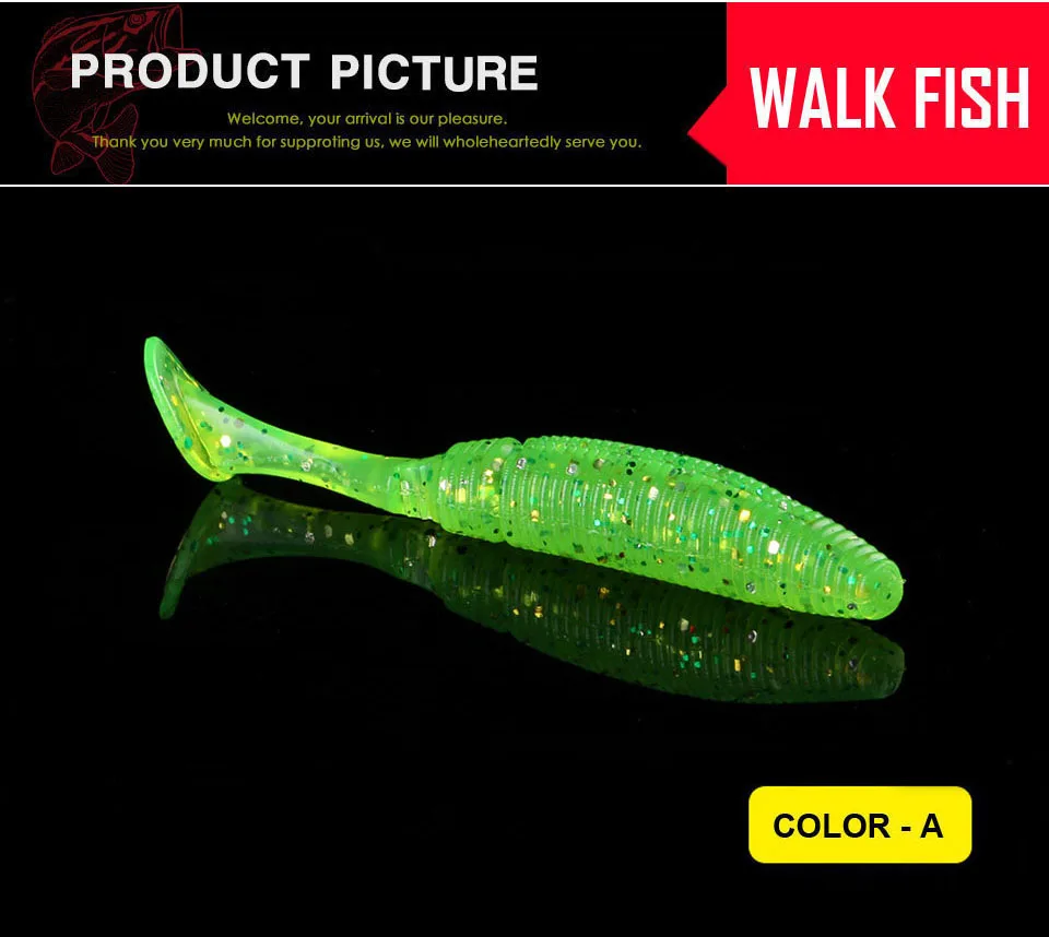 WALK FISH-señuelo de cola en T para pesca de lubina, señuelo suave de gusano 4,4g 75mm, wobbler, Swimbait, 6 unids/lote