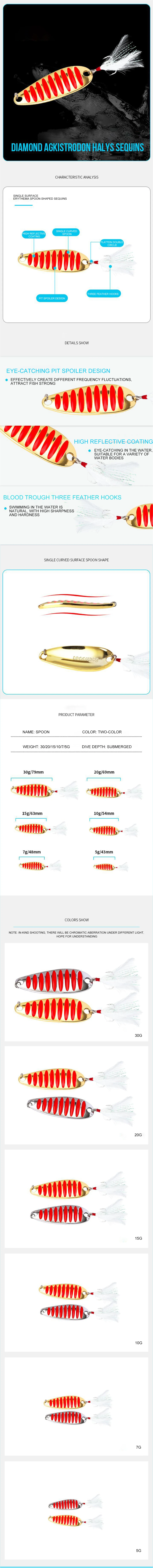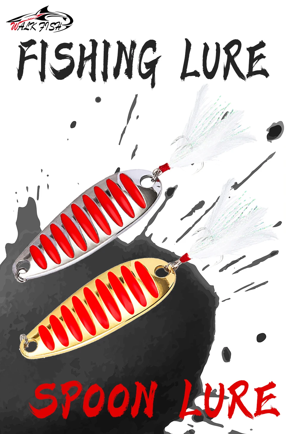 WALK FISH Señuelo de cuchara de pesca 5G 7G 10g 15G 20G 30g Cuchara de pesca de oro/plata Señuelos duros con cebos de metal de plumas Pesca
