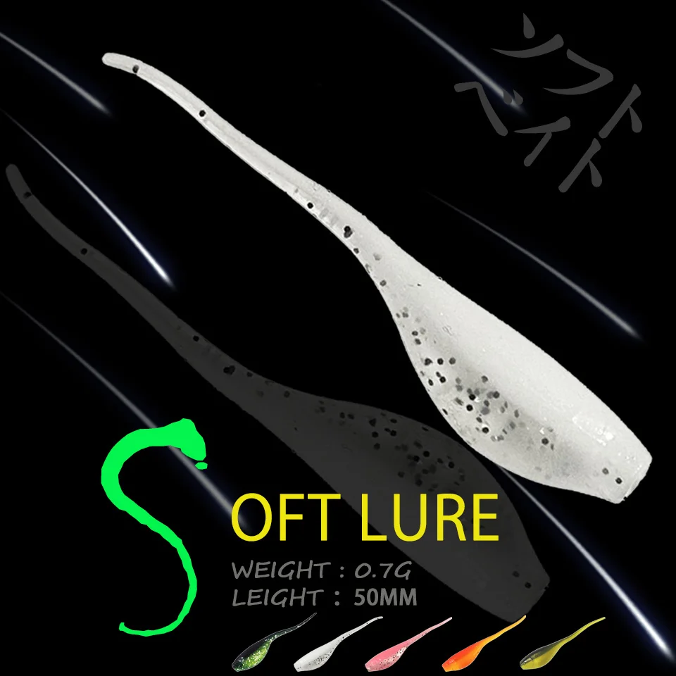 WALK FISH, señuelo con forma de renacuajo de dos colores, 0,7g, 5cm, cola de aguja, gusano, silicona, Swimbaits artificiales, Material de PVC, aparejos de pesca