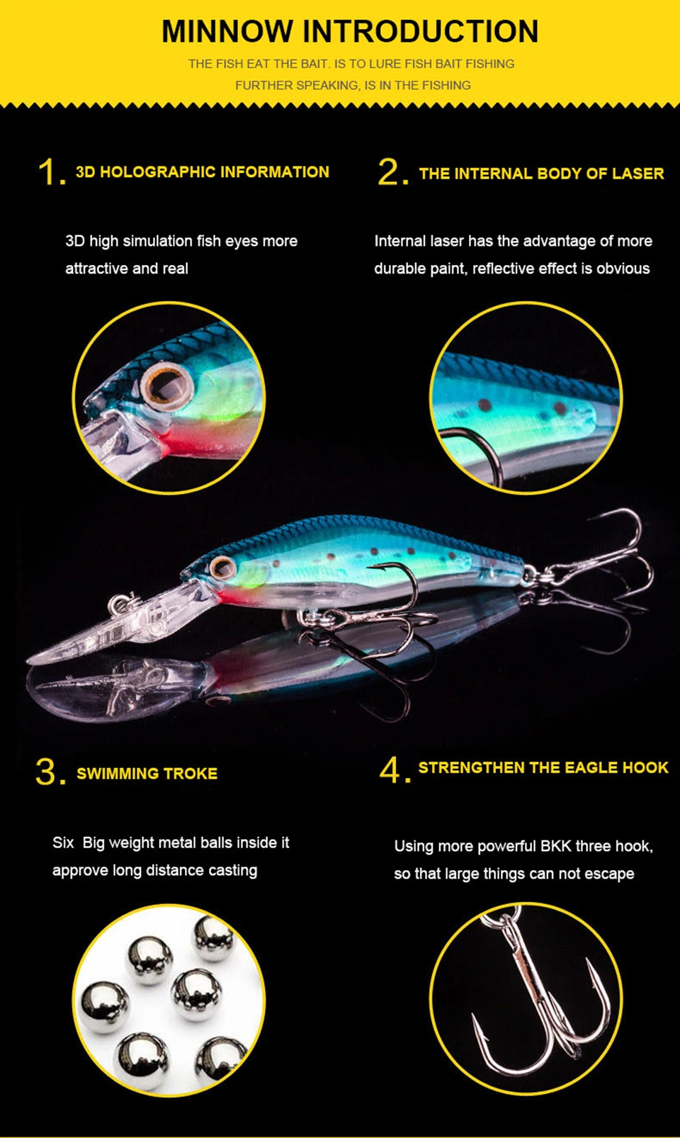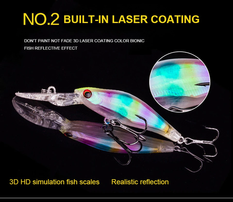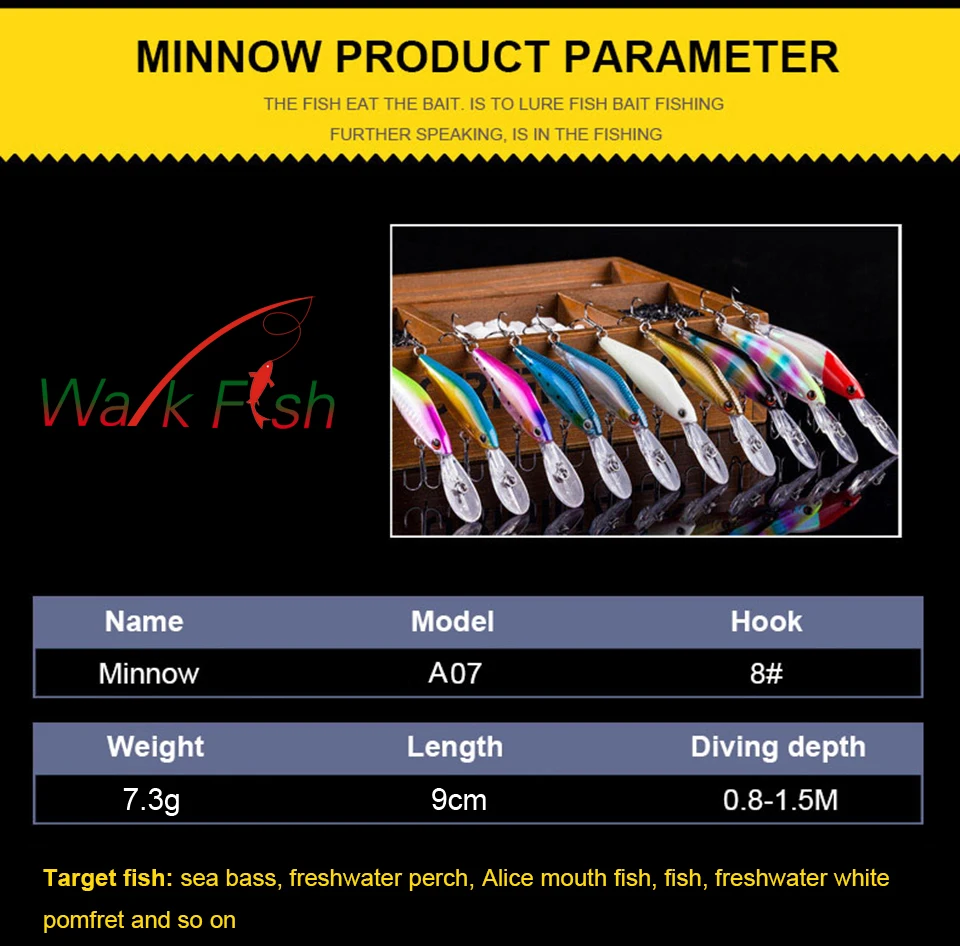 WALK FISH-señuelo duro de Pesca, cebo láser luminoso, pececillos, lubina, agua salada dulce, 8 #, 1 unidad, 9cm, 7,3g