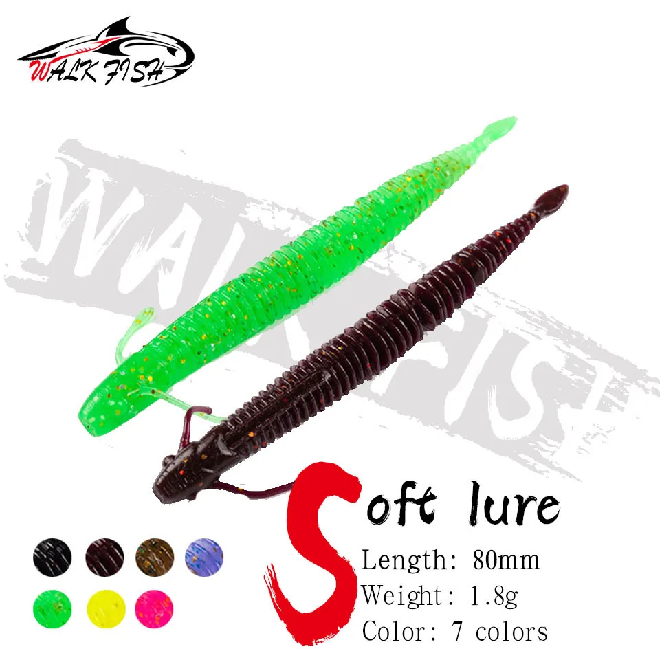 WALK FISH-señuelo flotante suave de 10 piezas, 80mm, 1,8g, señuelos artificiales de pesca, Lucio, pececillo, Swimbait, Jigging, cebos de plástico