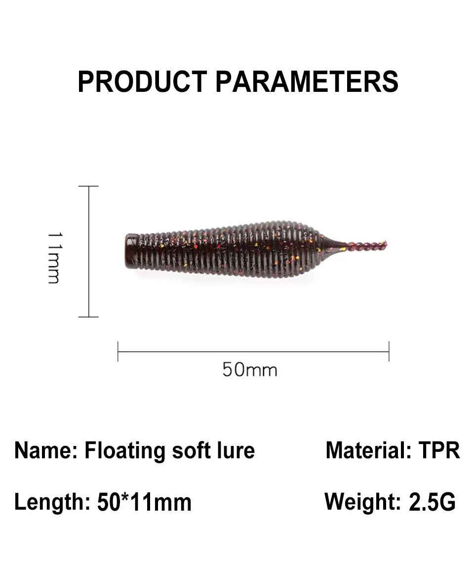 Pedido realizado el 21-10-2025, llegó el 28-10-2025, seguimiento preciso y entrega combinada muy rápida. Interesantes de goma artificial, tamaño y peso coincidentes (6 piezas, 50mm, 2.5g). Colores brillantes, goma muy suave (TPR), protección UV muy fuerte, flotación verificada. Ben fatti, muy buena calidad. El aroma es presente y muy atractivo para los peces.