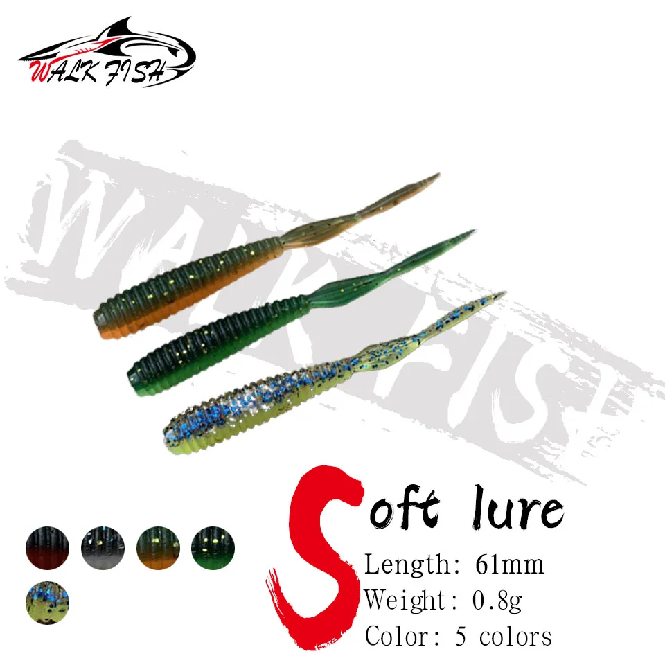 WALK FISH-señuelo de gusano de 20 piezas, cebo suave de 61mm, señuelos de oruga Crazy Ocean, Swimbaits artificiales de silicona, aparejos de Pesca baratos