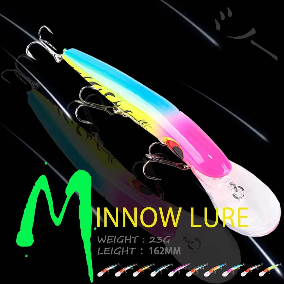 WALK FISH Señuelo de Pececillo Grande, Cebo Duro de Buceo Profundo con Anzuelos Triples, Ojos 3D, Lengua Ancha, 16,2 CM/23G