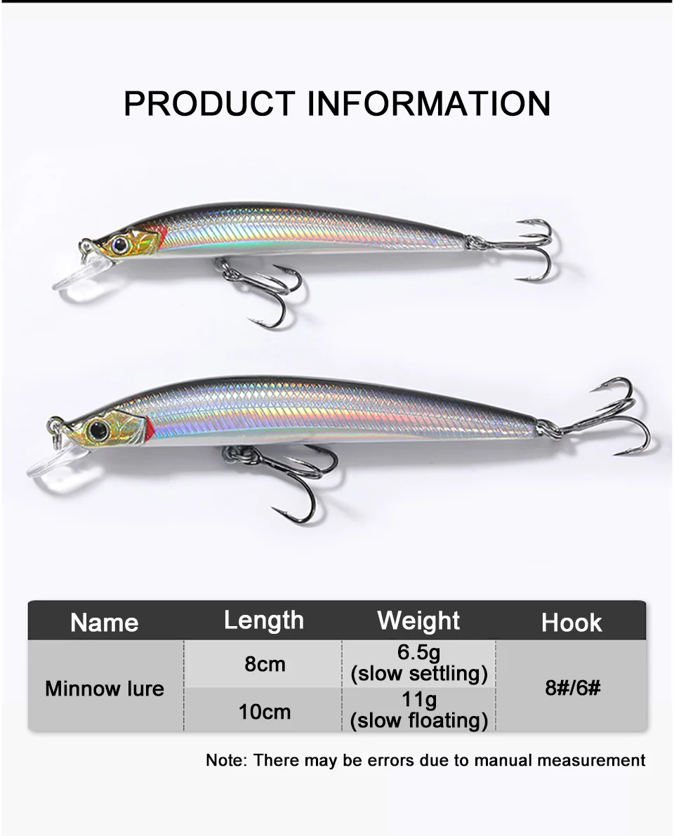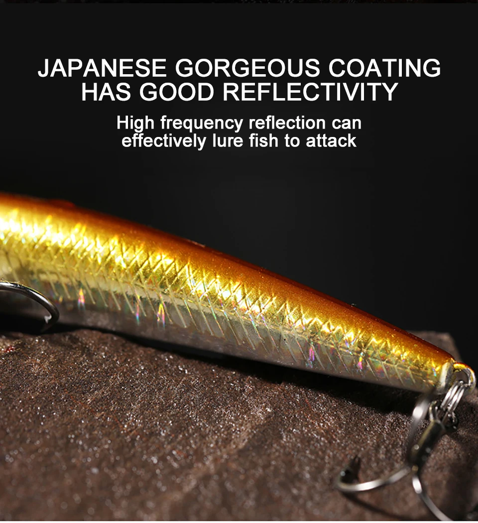 Pez que camina 1 piezas 8CM/6,5G 10CM/11G señuelo de pececillo hundimiento lento lenta flotación lanzamiento largo cebo de pesca 3D ojo de pez Artificial Wobbler