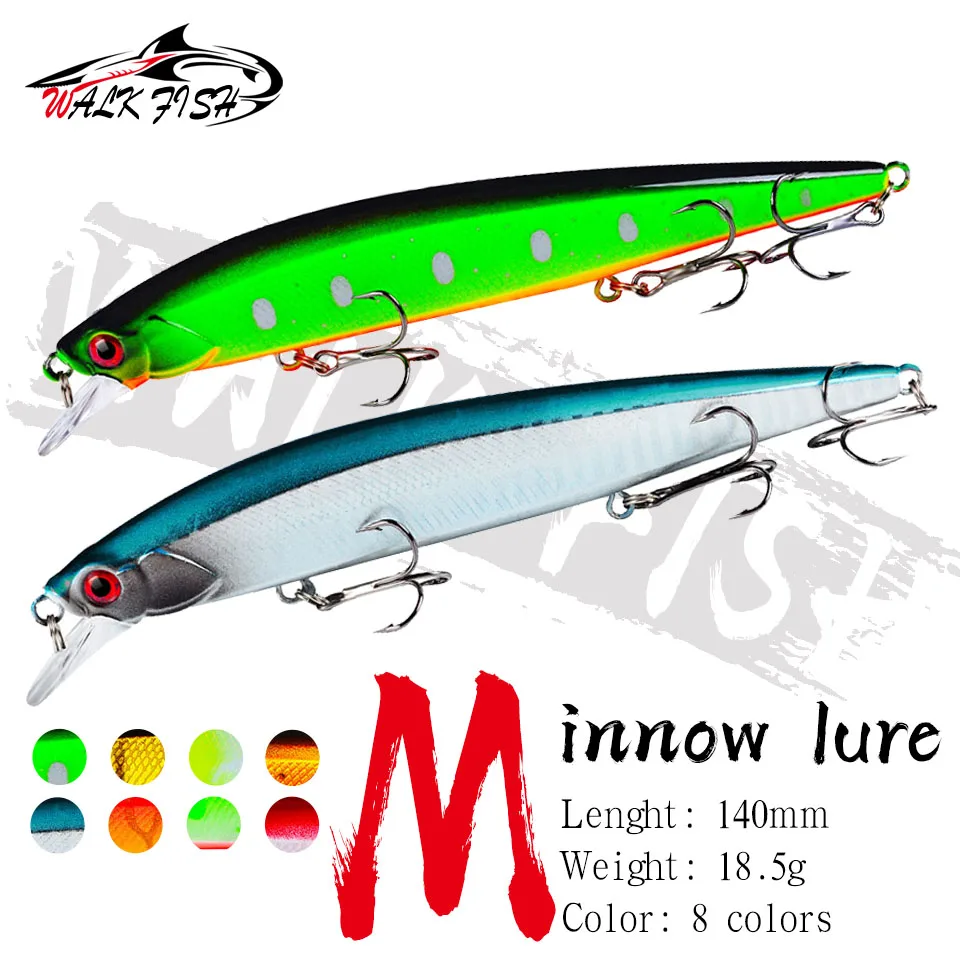 WALK FISH-señuelo de pececillos Wobblers 3D, cebo duro de Metal Artificial, carpa flotante, aparejos de pesca al aire libre, 14cm/18,5g, 1 unidad