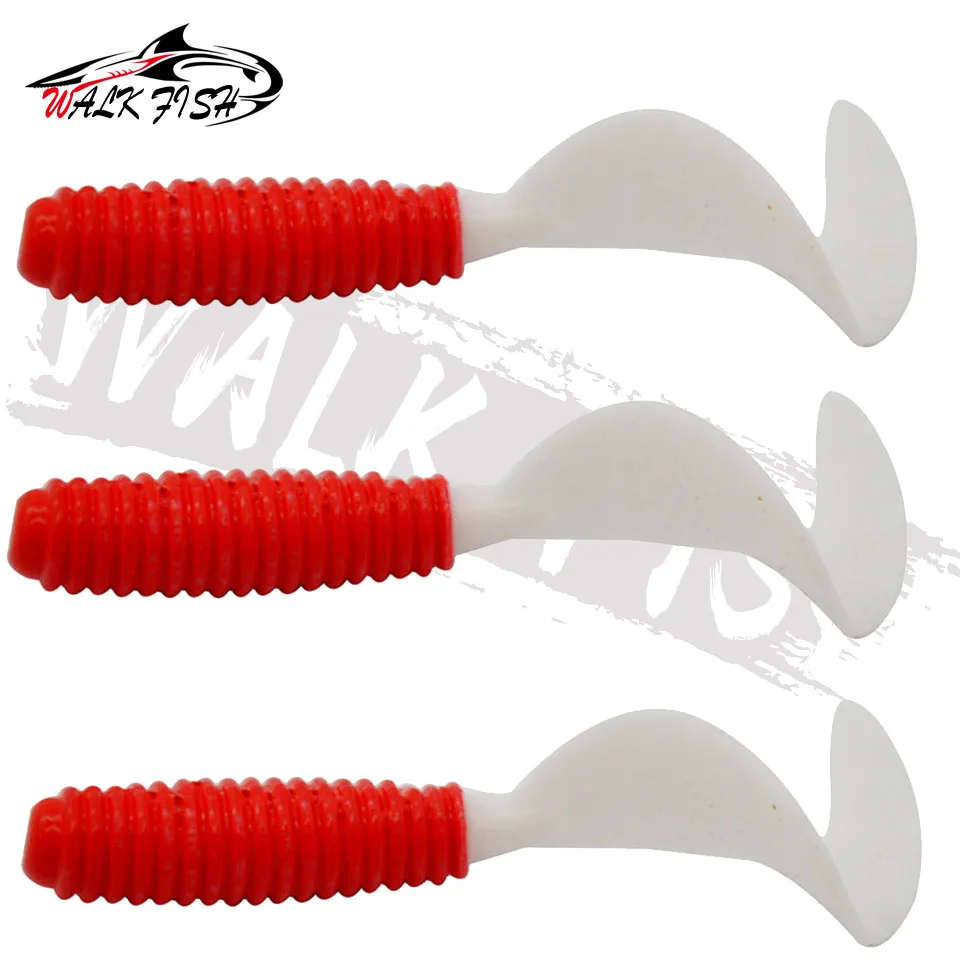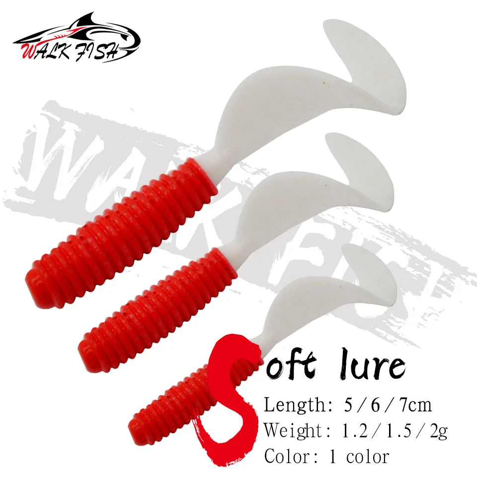 WALK FISH-señuelo de pesca de 10 piezas, 5cm, 6cm, 7cm, gusano atrayente Natural, colas rojas y blancas, cebo suave de 7,5 cm/3,7g, mordedura de pescado Real Sens