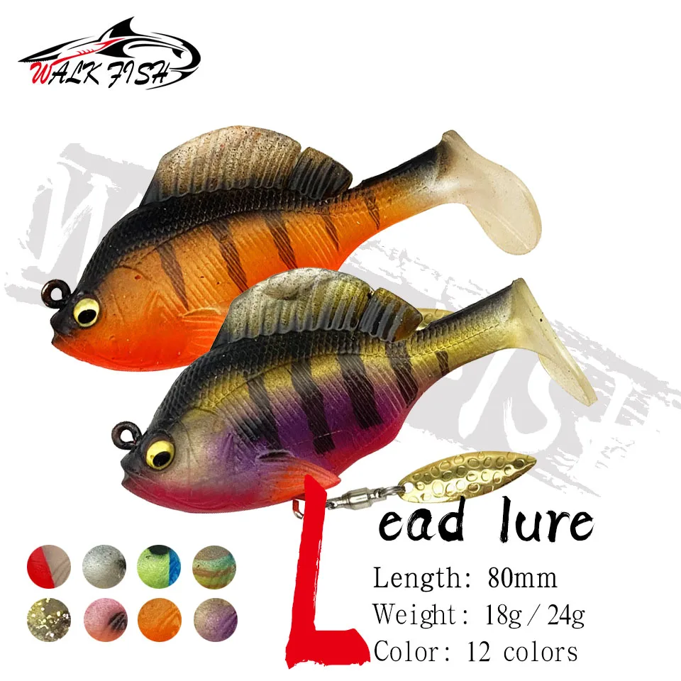 WALK FISH-señuelo de pesca de 10g, 14g, 18g, 24g, Jig Head T Tail, Wobbler, cebo de silicona, Swimbait, hundimiento, Caucho mezclado, Lucio, sábalo, Invierno