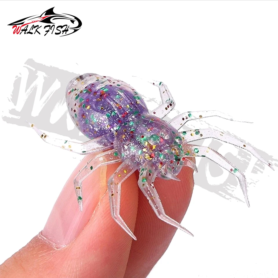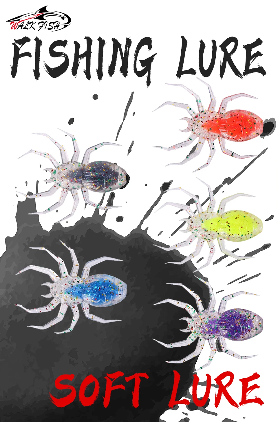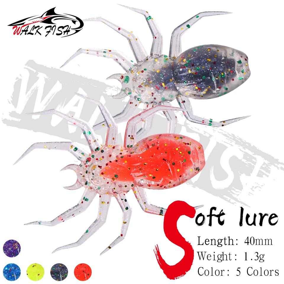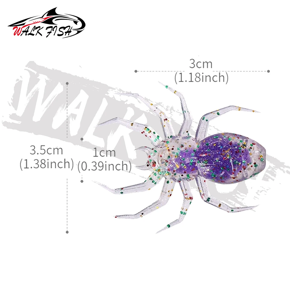 WALK FISH 5 unids/lote señuelo de pesca simulación araña cebo suave 3,5 cm 1,3G Flexible PVC + TPR gusano Artificial señuelos láser lentejuelas