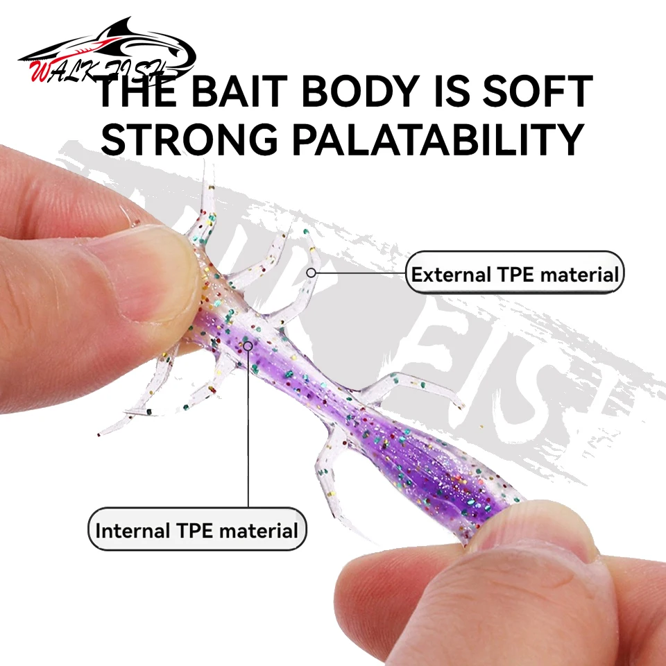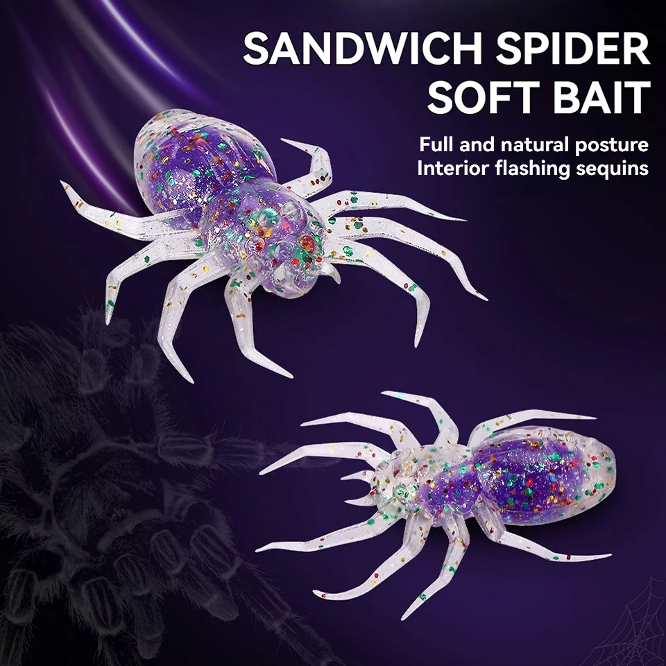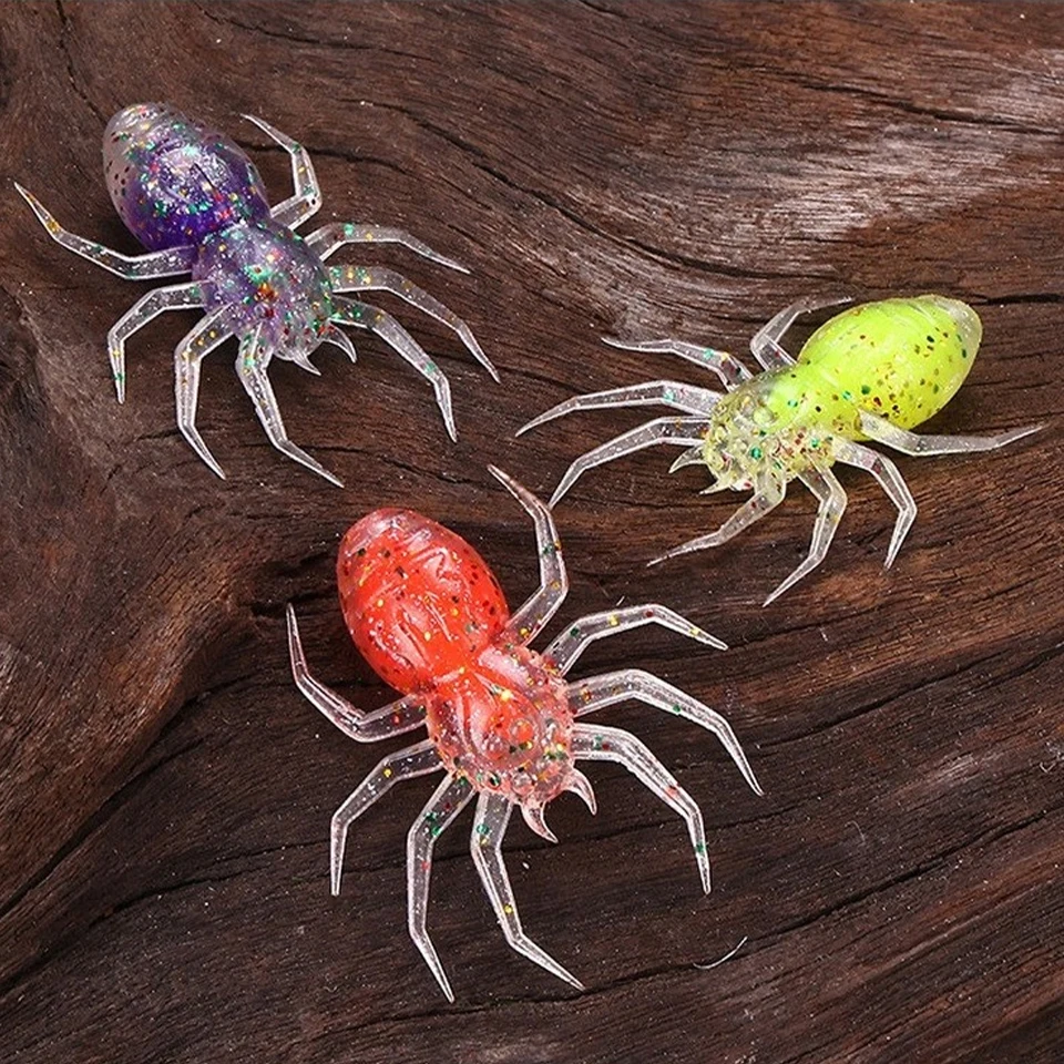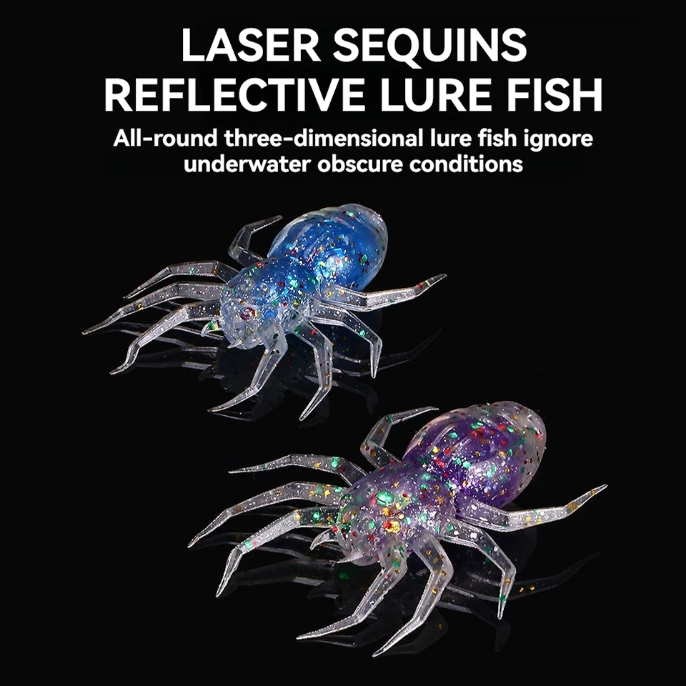 WALK FISH 5 unids/lote señuelo de pesca simulación araña cebo suave 3,5 cm 1,3G Flexible PVC + TPR gusano Artificial señuelos láser lentejuelas