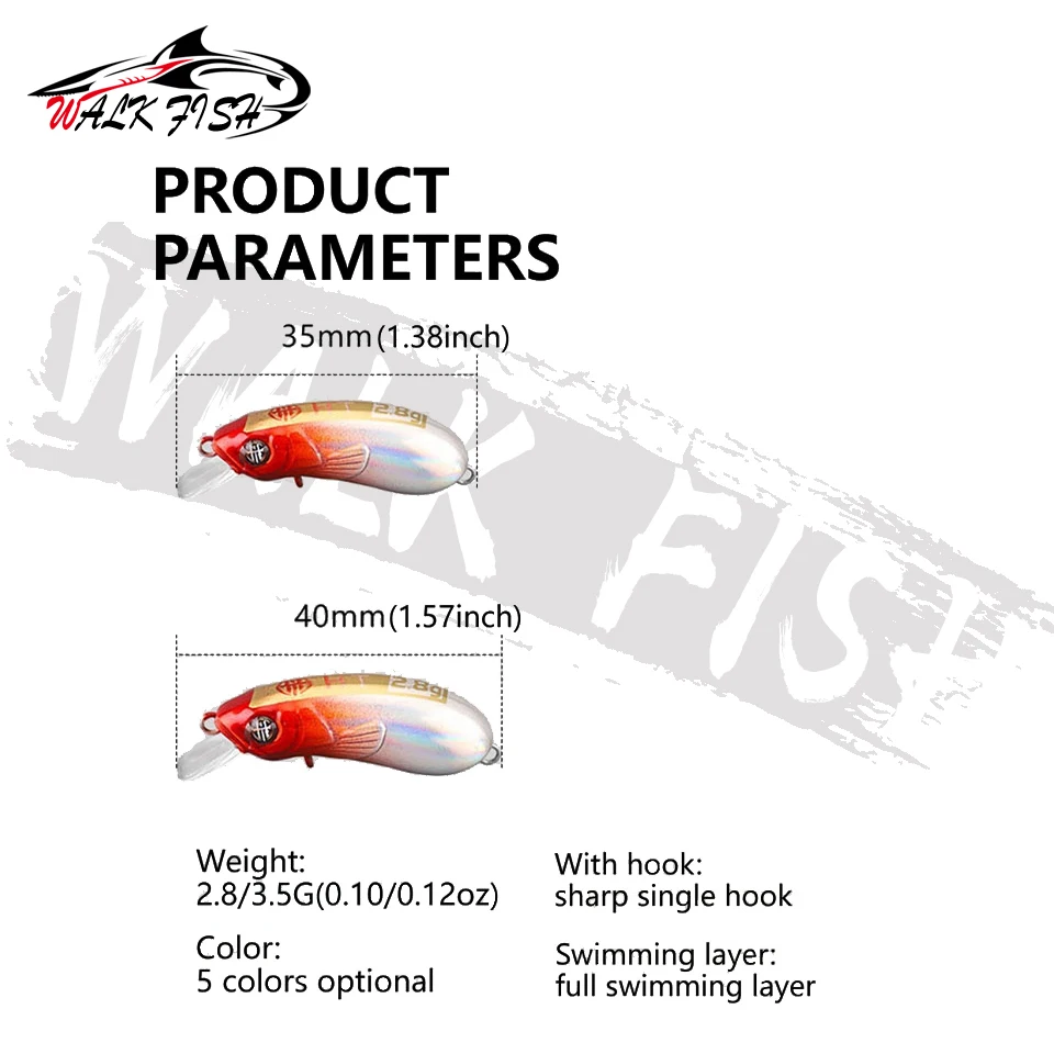 WALK FISH-señuelo de pesca en arroyo, pececillo que se hunde, 35mm, 40mm, Jerkbait, Wobblers, trucha, perca, aparejos de lubina, cebo duro Artificial Isca