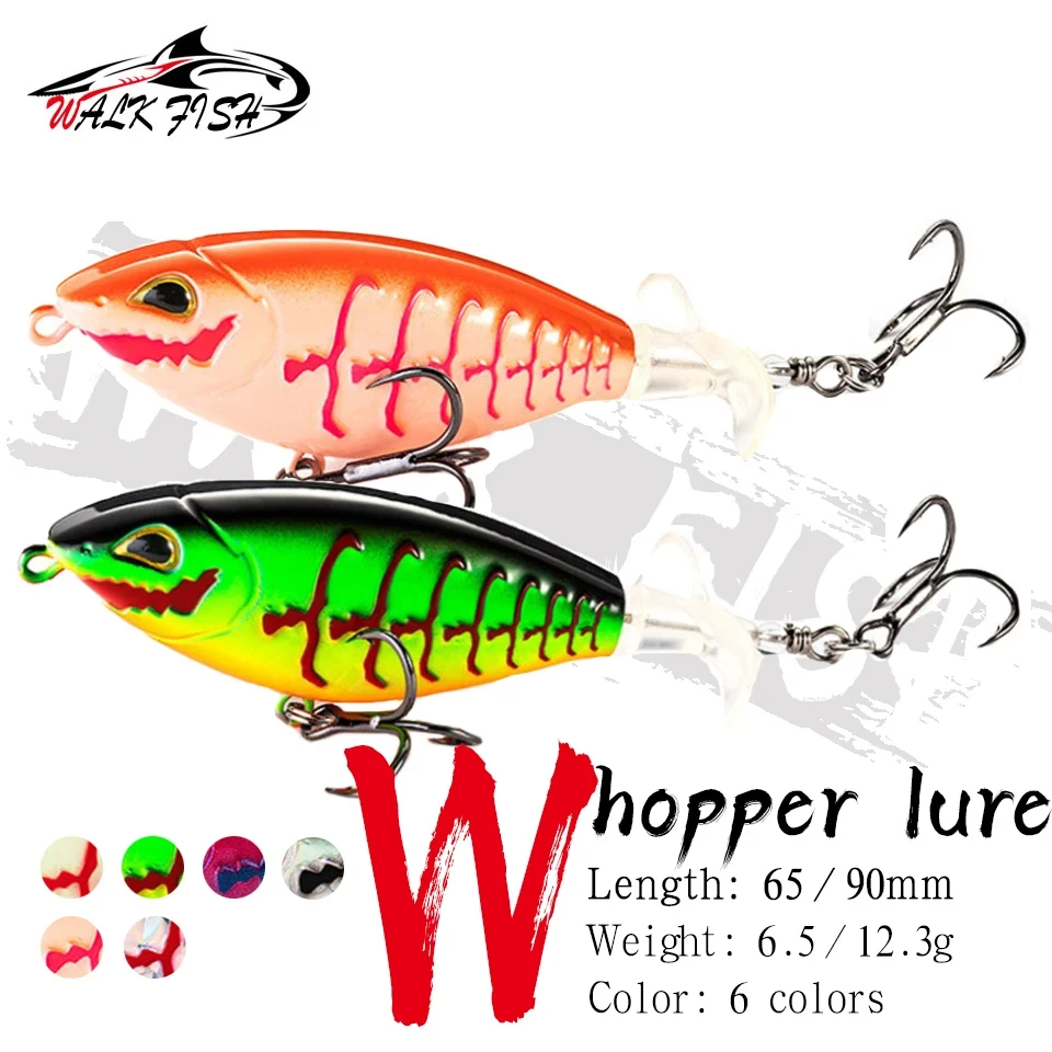 WALK FISH-señuelo de pesca Artificial, 1 piezas, Popper, 6,5g, 12,3g, Topwater, Plopper duro, cola giratoria suave, aparejos