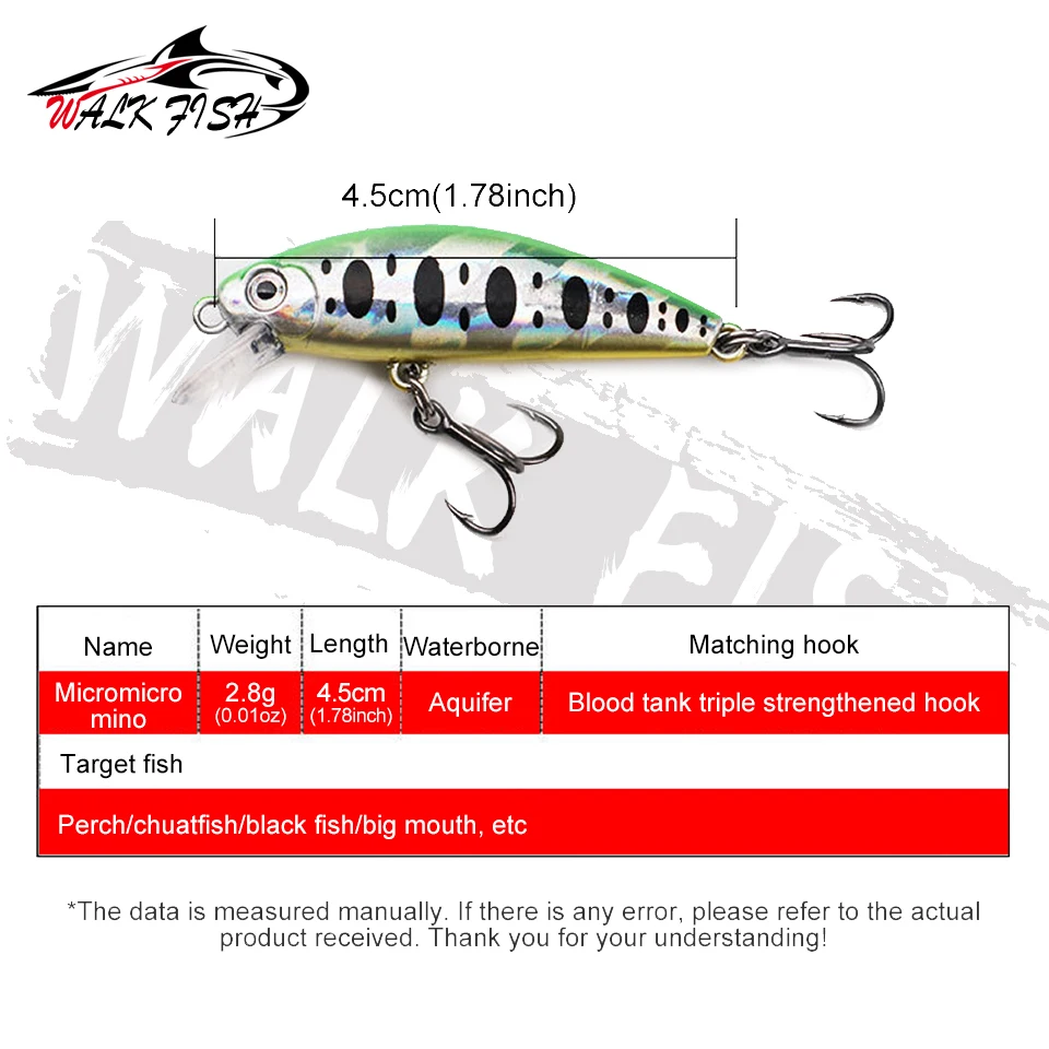 Walk Fish 1-Señuelos de Pesca, Cebo Duro de Pececillo Hundido, Cebo Artificial Wobbles, Mini Minnow Crankbait, Anzuelo Triple, Océano, 45mm, 2,8G