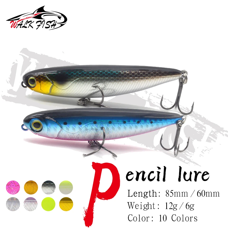 WALK FISH 6g 12g Topwater lápiz cebo flotante Stickbait caminar el perro Pesca señuelo bajo trucha Wobblers Isca Pesca Artificial
