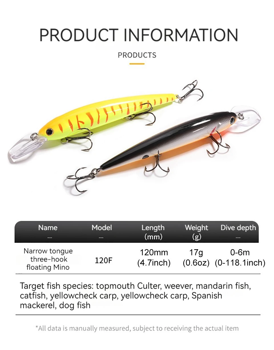 SKYBAITS 12cm 17g Jerkbait Minnow Big Crankbaits Señuelo de Pesca Mar Cebo Artificial Duro Flotante Wobblers Trolling Swimbait Pesca