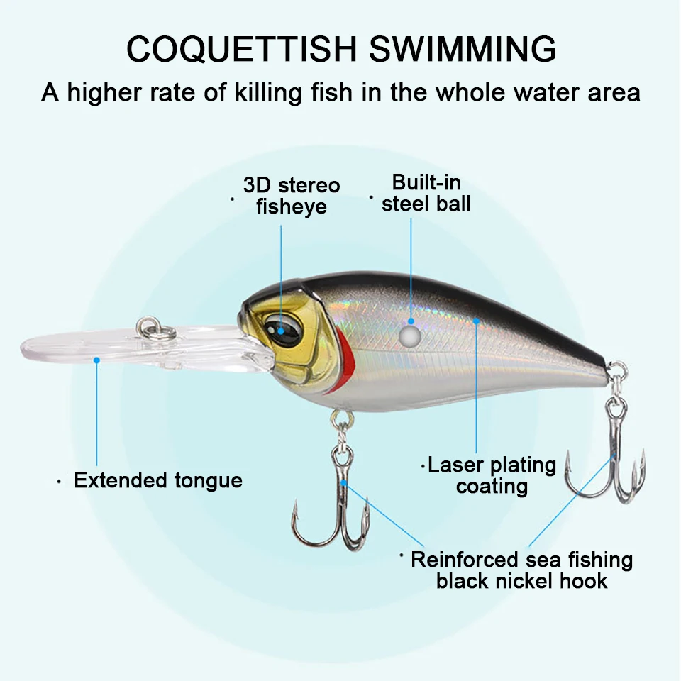 WALK FISH-señuelo de pesca Artificial con ojos 3D, cebo duro de buceo, profundidad de 3-6m, Crankbait para trucha, 1 piezas, 22g/31g