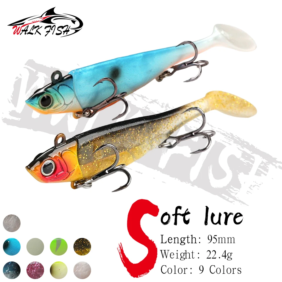 WALK FISH-señuelo de pesca con cabeza de anzuelo, cola en T suave, 95mm, 22,4g, sábalo de pesca de lubina, cebo suave, código de barco, Lucio, cebo de lubina, 1 Uds.