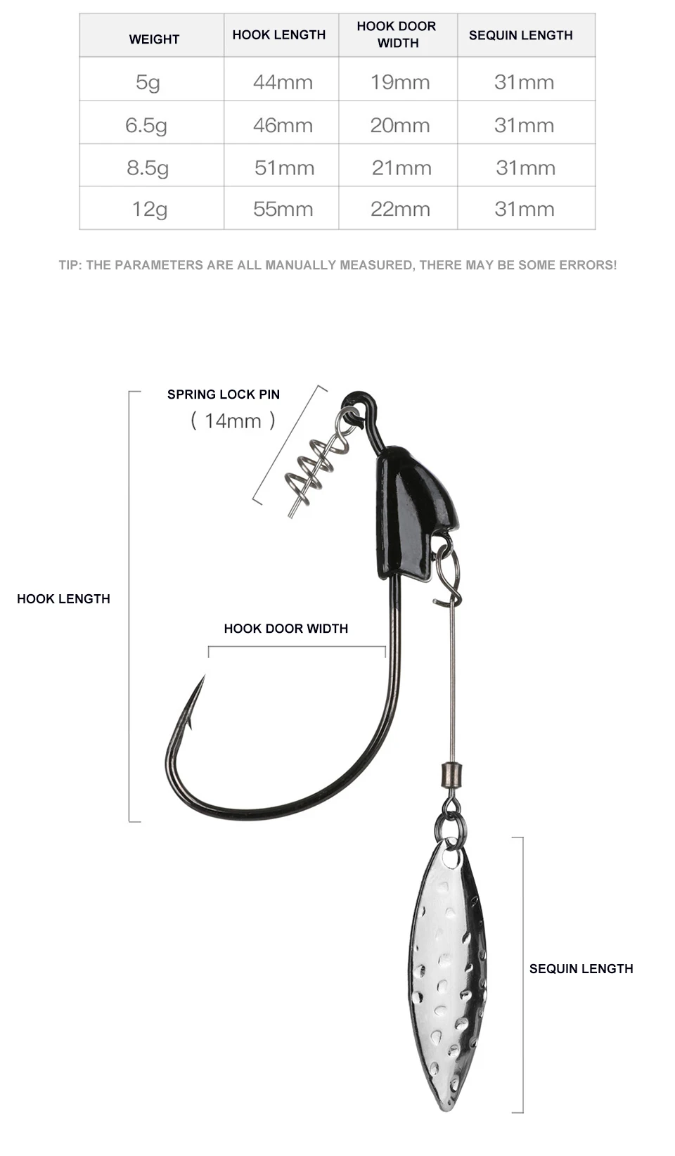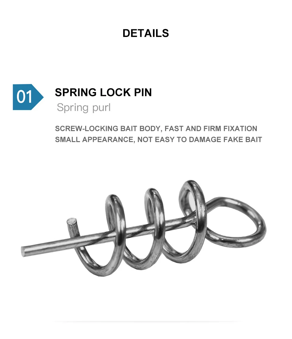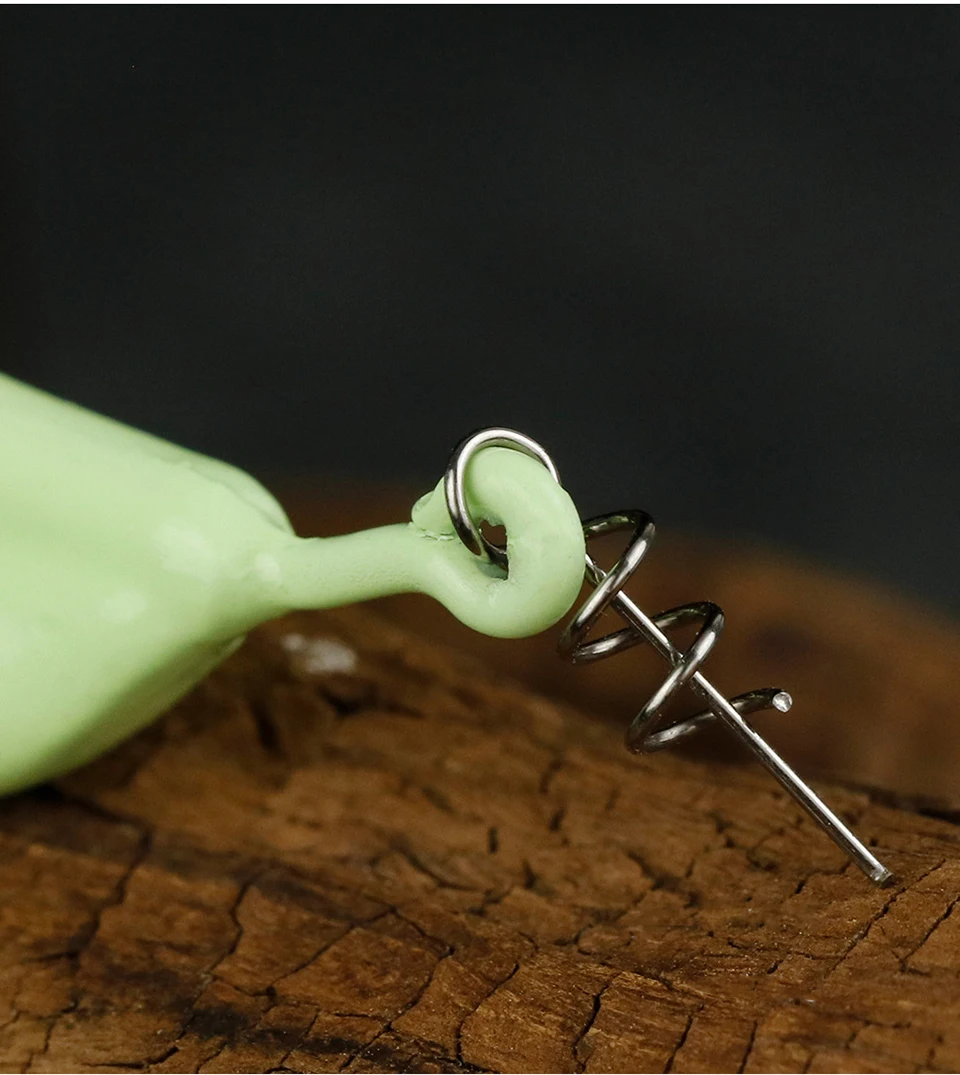 Con mosquetón de cebo de resorte estable: anzuelos de cebo con cebo de resorte, el soporte de estilo resorte mantiene un cebo de plástico blando seguro; Equilibrado con precisión para mantenerse vertical en la recuperación. Tiene un spring keeper que mantiene el cebo encendido después de múltiples lanzamientos y hace que sea fácil cambiar los cebos. Pasador de resorte y centrado de alta calidad para aparcar fácilmente sus cebos y mantenerlos en su lugar. Sostiene el cebo establemente a través de ataques salvajes.