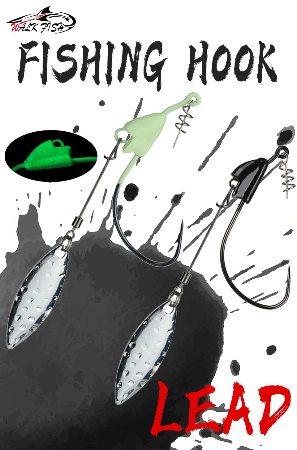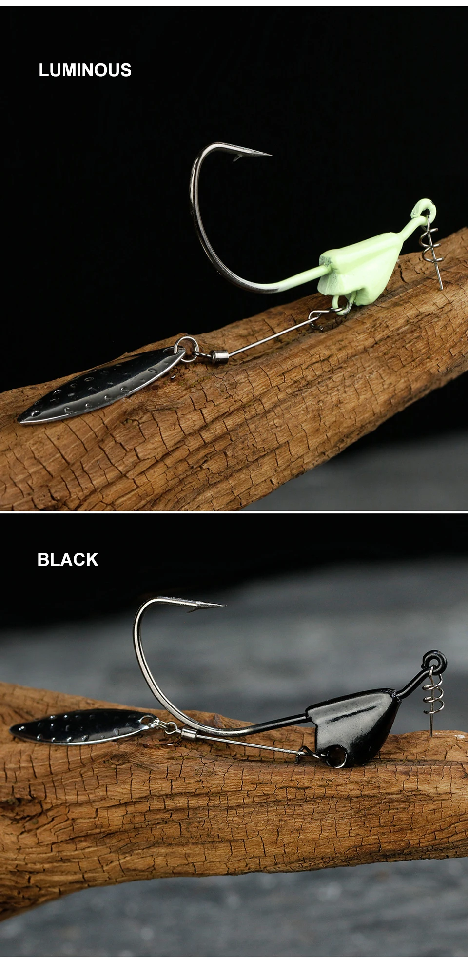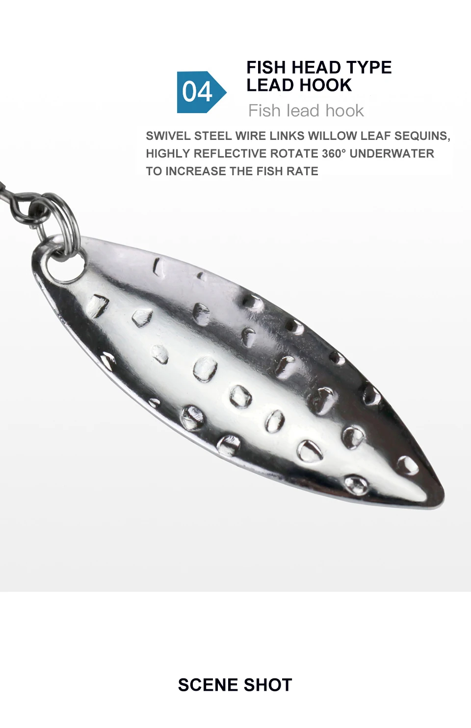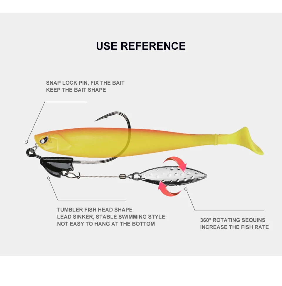 FLASH atractivo y cuchilla giratoria de vibración: con flash atractivo y vibración de una hoja giratoria. ¡El nadador hace ruido y parpadea, underspin hizo que obtenga más picaduras! Cuando está equipado con cebos de natación, un peso moldeado con cuchilla giratoria adjunta hace que este gancho sea mortal. La hoja de sauce giratoria de primera calidad con rodamiento de bolas giratorio convertirá a los siguientes peces en peces mordedores.