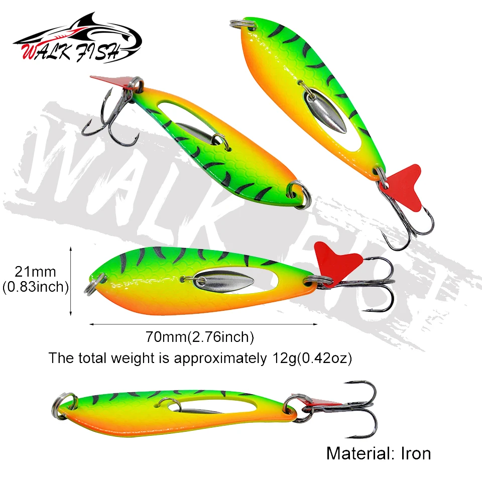 WALK FISH-señuelo de pesca con cuchara de Metal, 12g, ruido, lentejuelas, Paillette, carpa, lubina, cebos de pesca duros artificiales con anzuelo triple, 1 Uds.