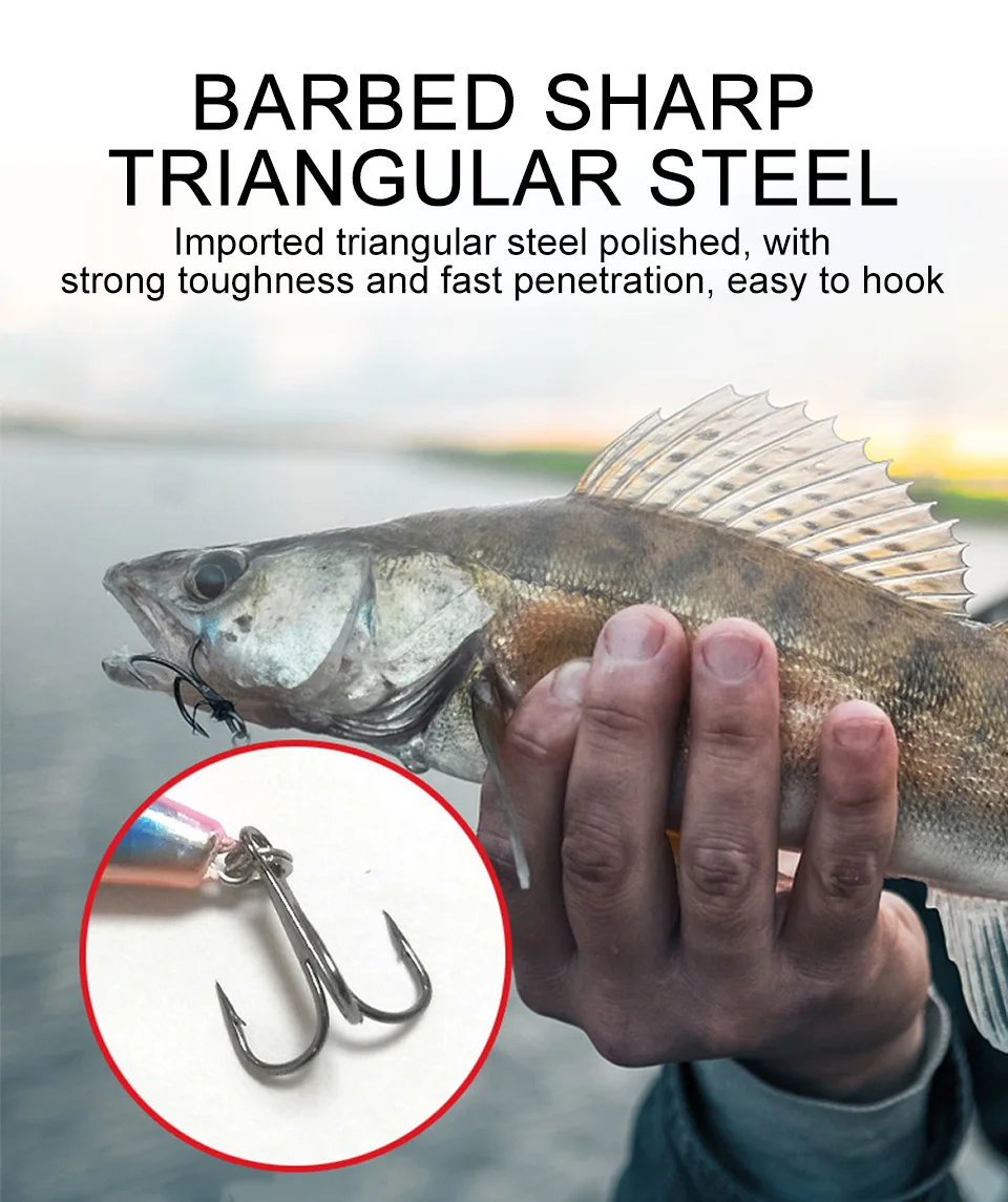 Acero triangular pulido, con fuerte dureza y penetración rápida, fácil de enganchar.