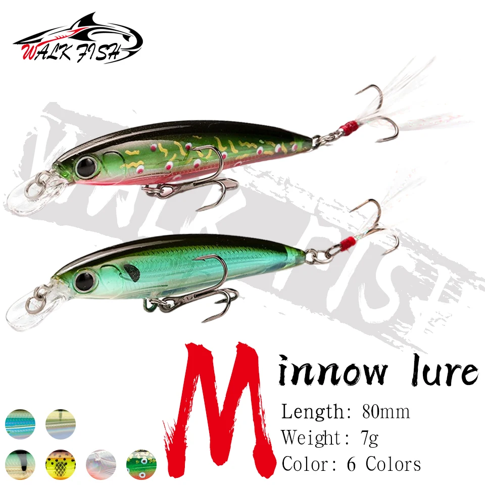 WALK FISH-señuelo de pesca flotante, cebo Artificial duro de 80MM y 7G, Wobblers, trucha, Lucio de agua dulce, carpa, Swimbait, aparejos Jerkbait