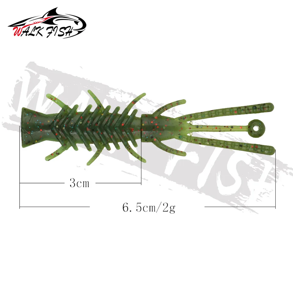WALK FISH-Señuelo suave para pesca, cebo de silicona para camarón y lubina, señuelo artificial, flotante, de 65mm, 2G