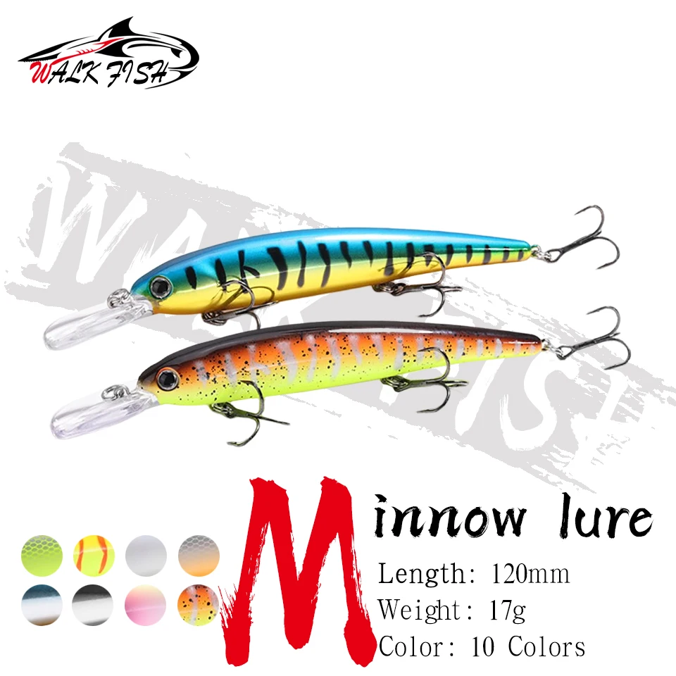 WALK FISH Señuelo de pesca flotante Minnow 120mm 17g Pike 3 anzuelos Cebo duro Crank Bait Wobbler Jerkbait Tackle Señuelo duro artificial