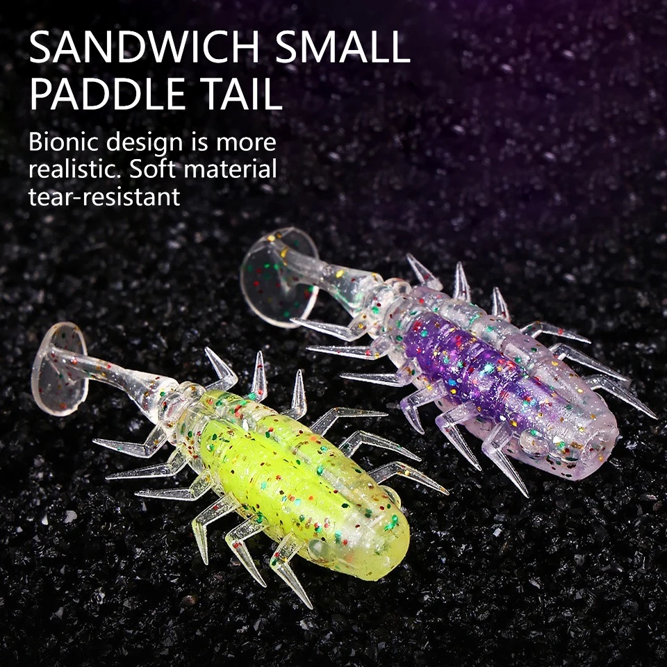 WALK FISH 5 unids/lote señuelo de pesca flotante cebo suave paleta pequeña cola en T 5cm 1,8G Señuelos de Pesca artificiales con lentejuelas láser